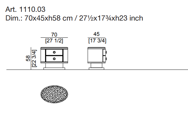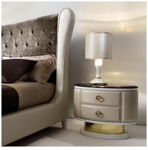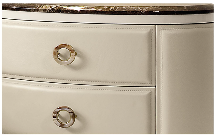 Овальные очертания тумбы Pianosa придают ей мягкость и плавность линий, делая её идеальным выбором для современных и классических интерьеров. Два вместительных ящика сочетают функциональность с эстетикой, а золотая или лакированная отделка основания добавляет ноту роскоши. Верхняя часть из натурального мрамора не только подчеркивает премиальность мебели, но и обеспечивает долговечность.