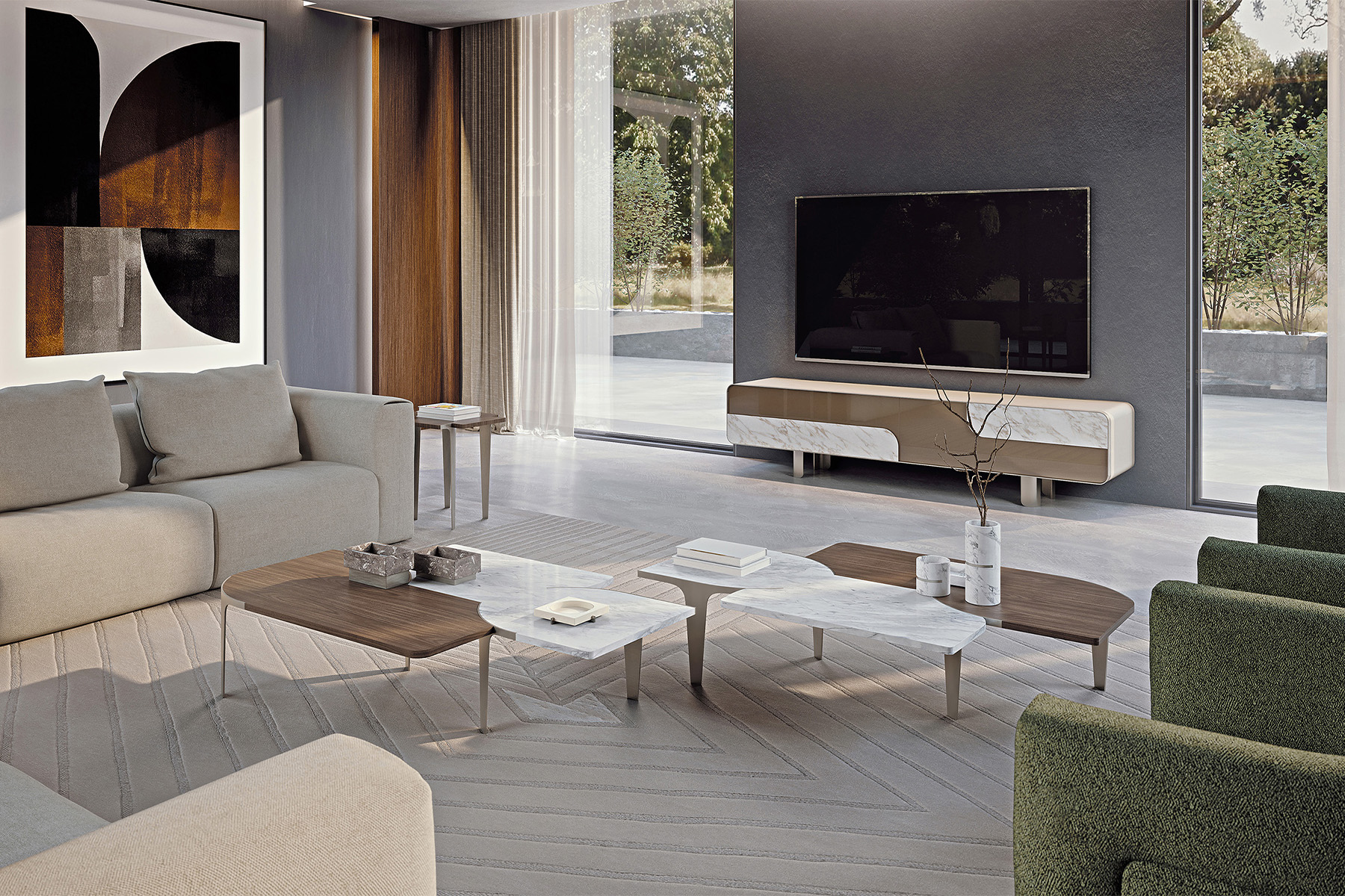 Фабрика TURRI использует только натуральные материалы премиум-класса, которые гарантируют не только визуальное совершенство, но и исключительную прочность. Ореховое дерево с выразительной текстурой, благородный мрамор и высококачественные металлы — каждый элемент тщательно отобран и обработан вручную. Лакированная поверхность придает мебели глубину цвета и защищает ее от внешних воздействий, сохраняя первозданный вид на долгие годы.