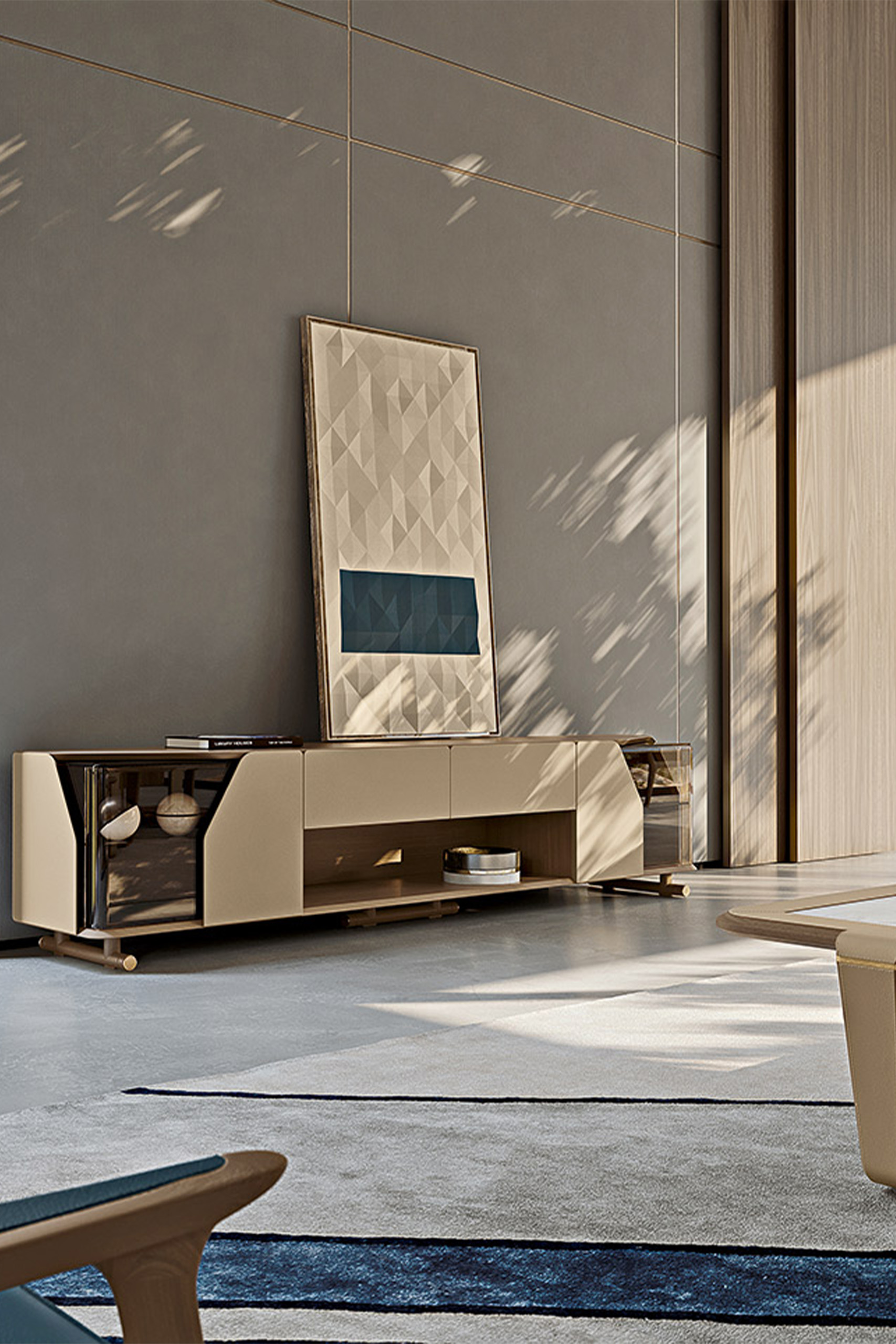 Тумба Vine станет центральным элементом гостиной, кабинета или спальни, привнося в интерьер ноты роскоши и уюта. Она идеально подходит для размещения телевизора, мультимедийной техники или коллекционных предметов. Ее элегантный дизайн гармонично сочетается как с классическими, так и с современными интерьерами, делая пространство стильным и респектабельным.