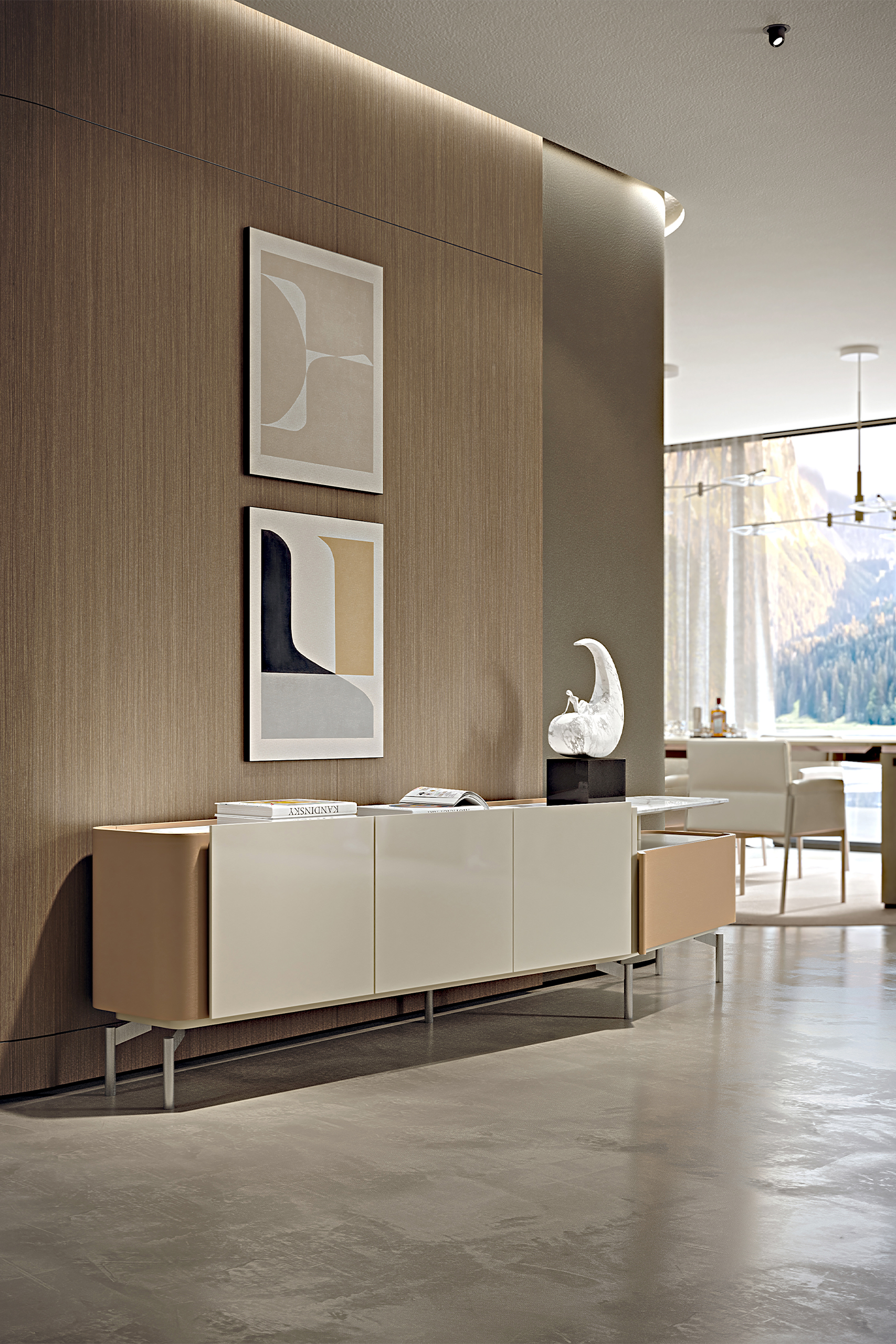 Итальянская тумба Zenit от фабрики TURRI – элегантное решение для современной гостиной. Модель отличается уникальным дизайном с глянцевыми лакированными дверцами, изогнутым кожаным выдвижным ящиком и просторной открытой полкой. Тонкие металлические ножки придают легкость и стиль. Доступна в различных вариантах отделки, включая дерево и мрамор. Итальянское качество и внимание к деталям делают эту тумбу идеальным дополнением интерьера.