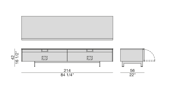 Тумба-подставка под ТВ из ореха Canaletta со столешницей из дерева или мрамора и отсеками с откидной створкой, и утопленной ручкой. Основанием из металла с отделкой под олово.