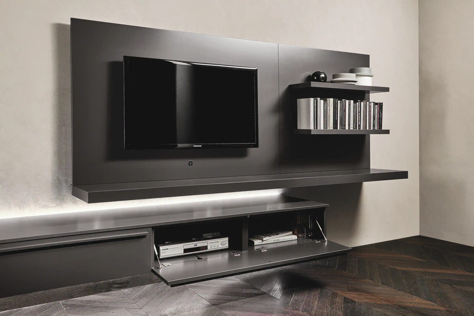 ТВ-панели толщиной 20 мм оснащены настенной проставкой для освещения по периметру. Настенная панель может быть фиксированной, с кронштейном Vesa, закрепленным на поверхности, или оснащена подставкой для телевизора, которая может поворачиваться в разных направлениях. В этом случае он оснащен центральным отверстием, так как кронштейн должен быть закреплен на стене.