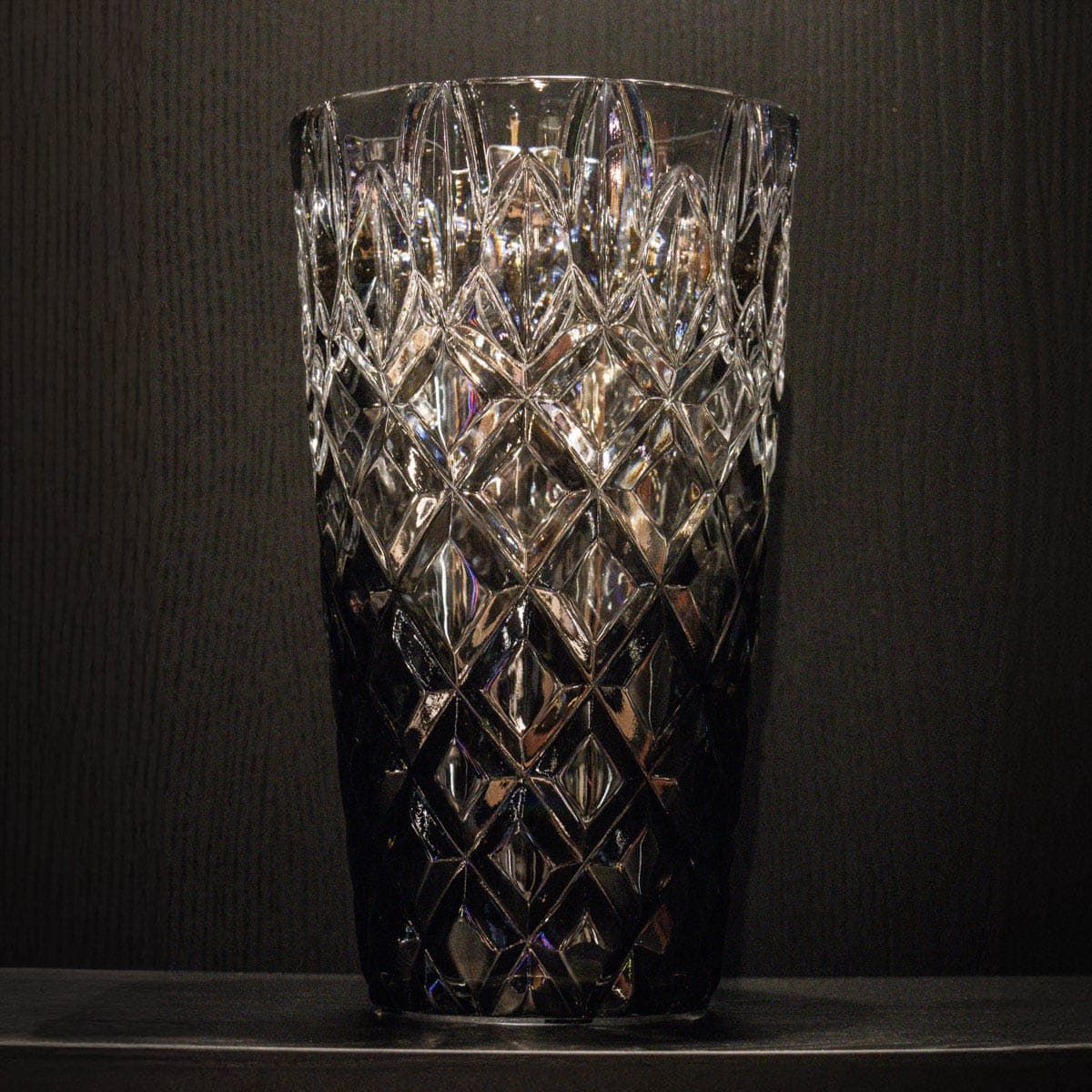 Ваза имеет диаметр 14 см и высоту 25 см.