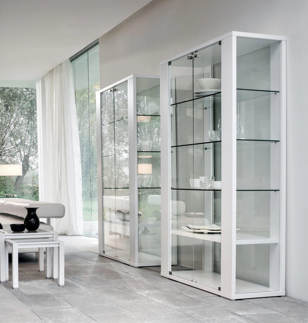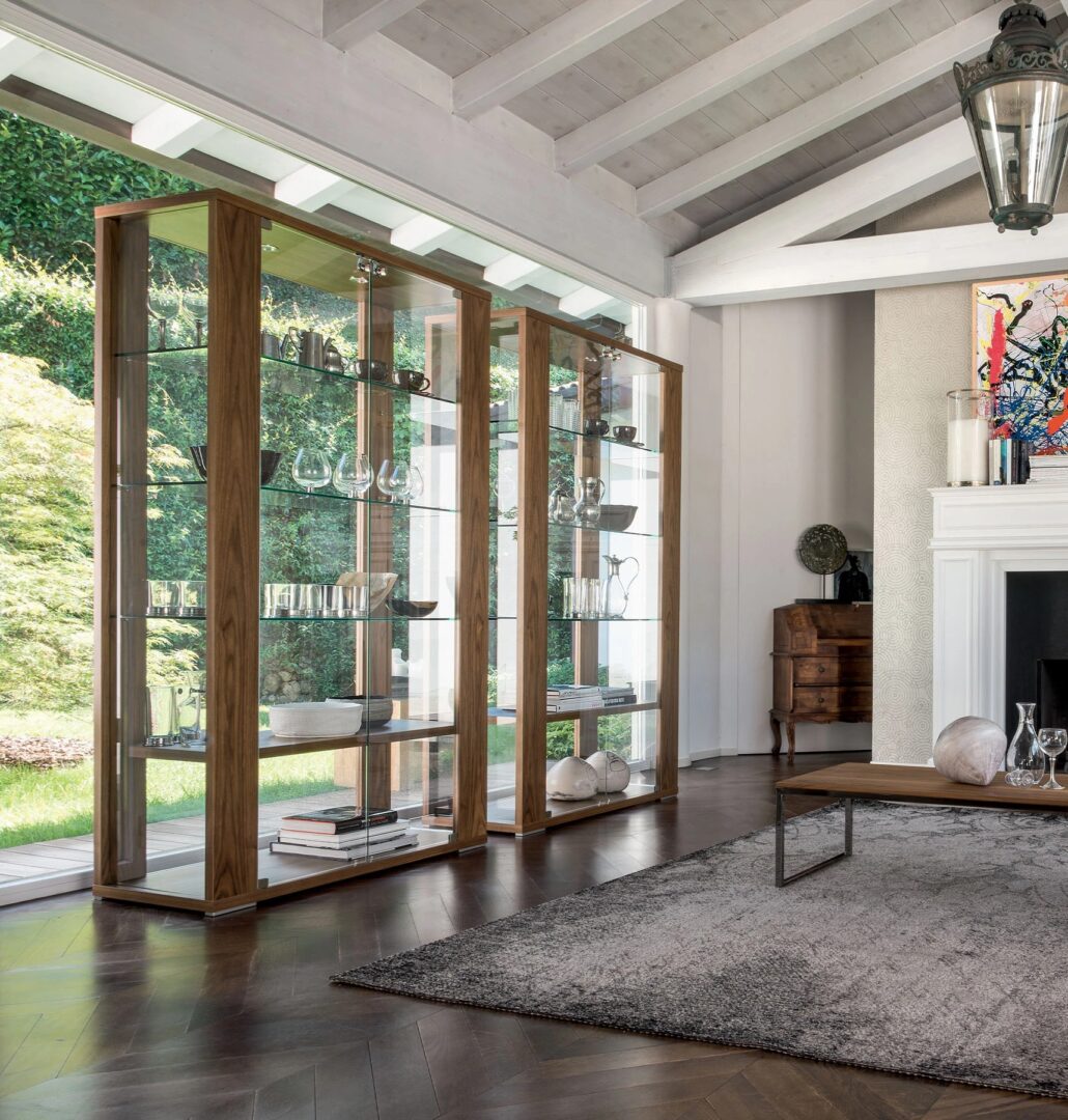 Мягко жесткая и основанная на контрасте между сильным присутствием дерева и естественной легкостью стекла, Aurora представляет собой уникальную и существенную. Двери, полки и спинка прозрачные, а боковины окрашены в белый цвет, орех Каналетто или термообработанный темный дуб. Независимо от того, какой предмет вы хотите хранить, Вы можете увидеть его идеально освещенным встроенным светодиодным прожектором.