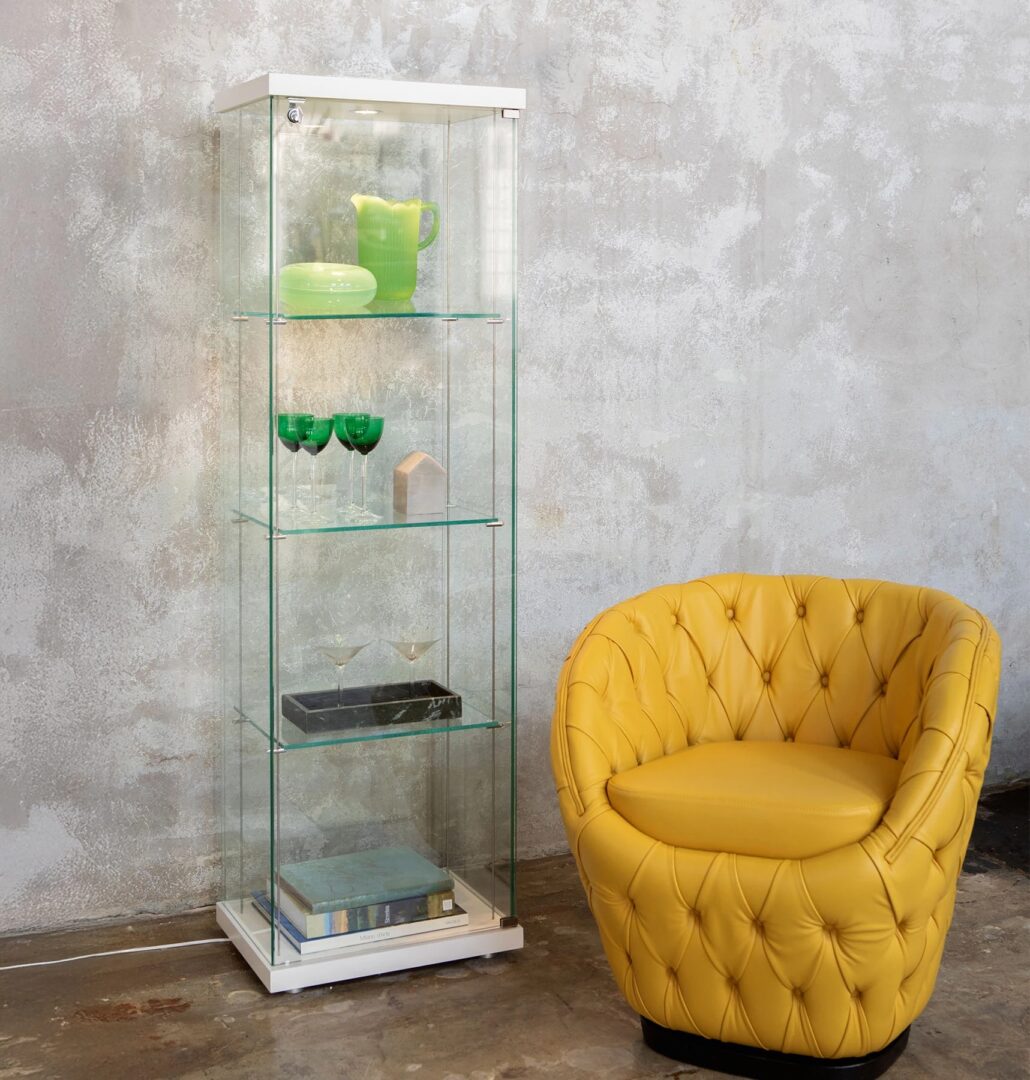 Элегантная витрина с деревянным основанием и верхом, структурой и полками из прозрачного хрусталя. Ego — это предмет мебели в изысканном стиле, украшенный внутренним светодиодным светом,который подчеркивает содержащийся в нем предмет.
