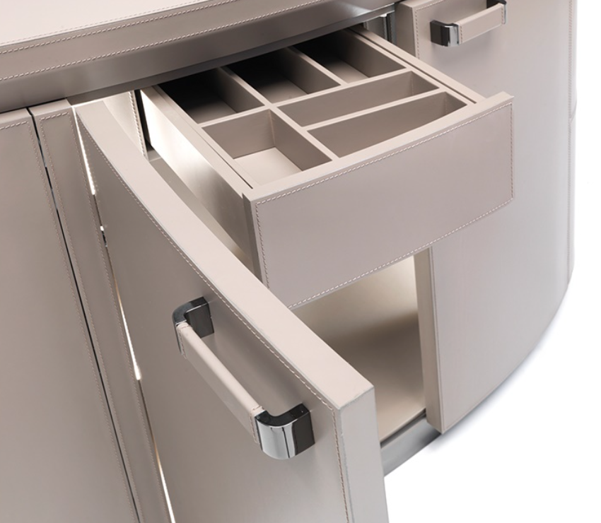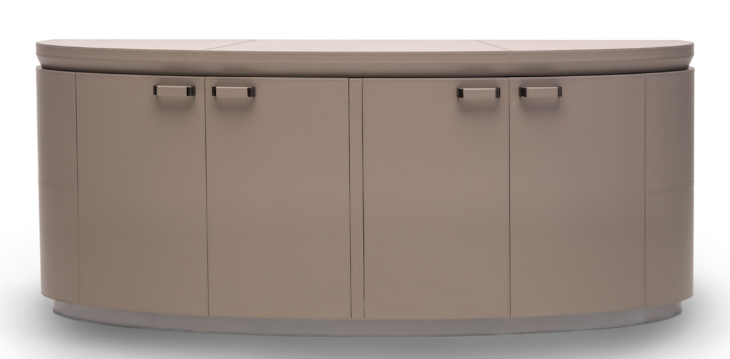 4-дверный комод с деревянным интерьером и кожаной обивкой.