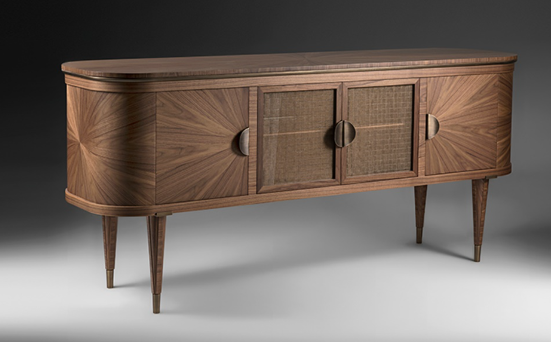Сервант Rodolfo из ореха Каналетто с бронзовыми элементами и стеклянными дверцами со встроенной металлической сеткой