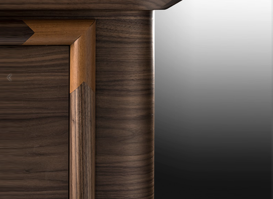 Тумба с низкой спинкой для телевизора из ореха Каналетто и тика.