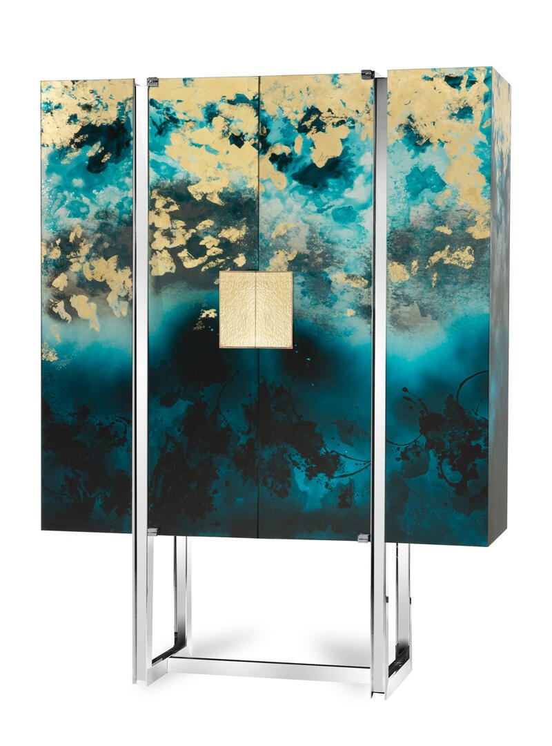 Конструкция выполнена из тикового дерева с матовым лакированным покрытием. Внутренняя часть оснащена светодиодной подсветкой.