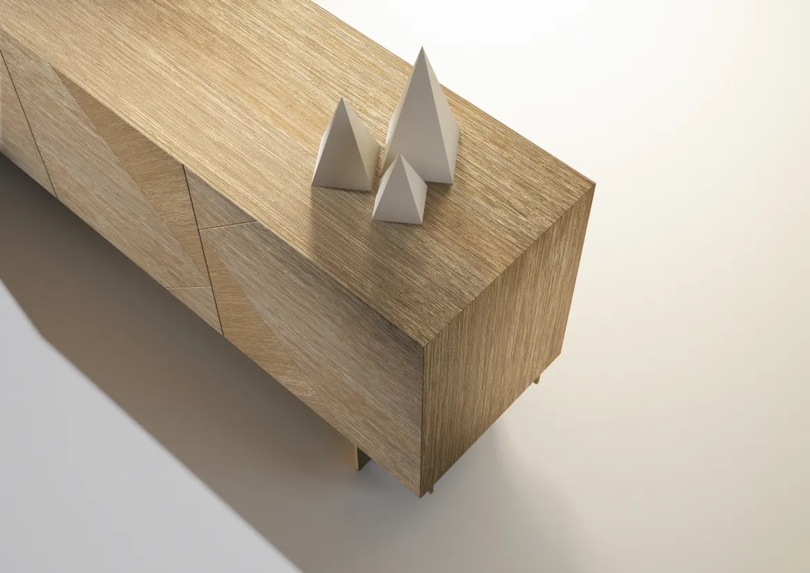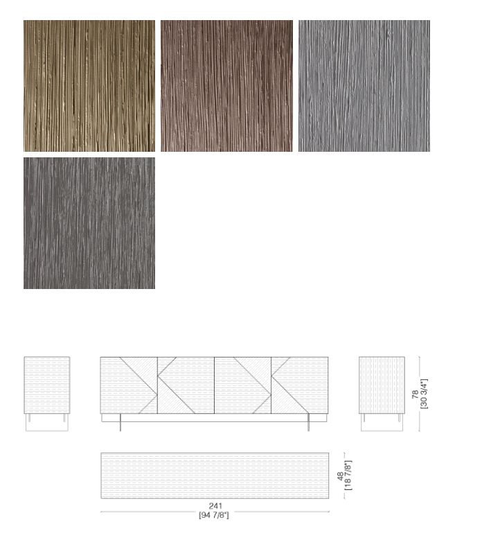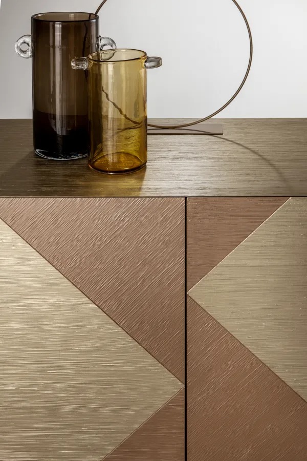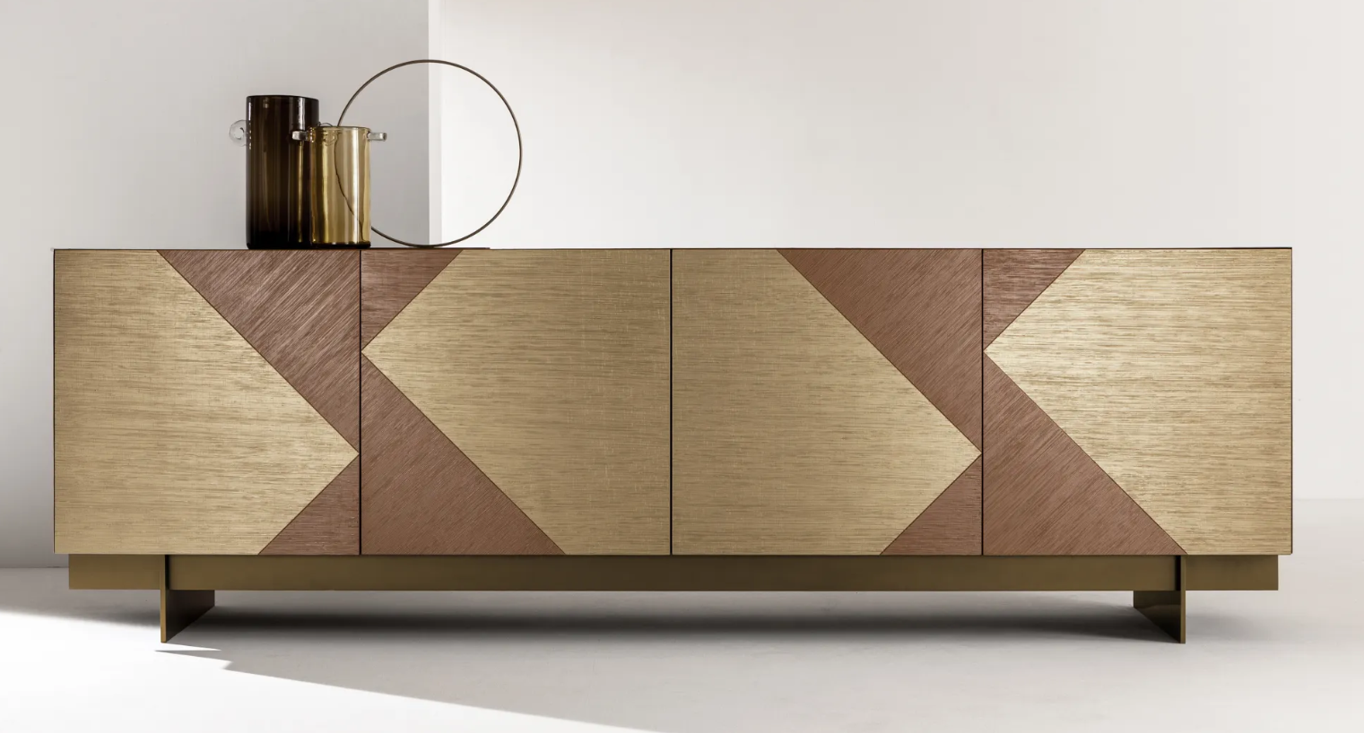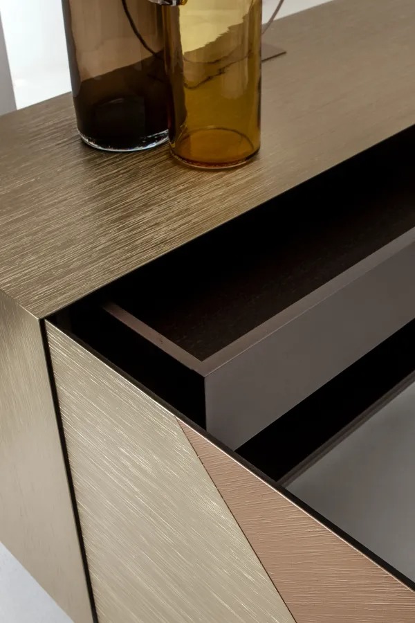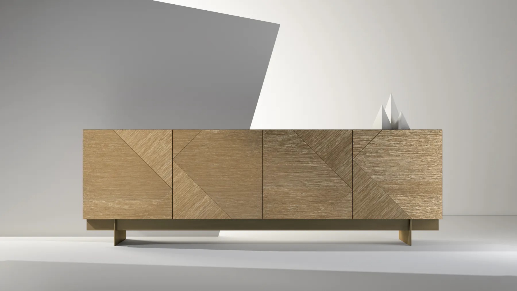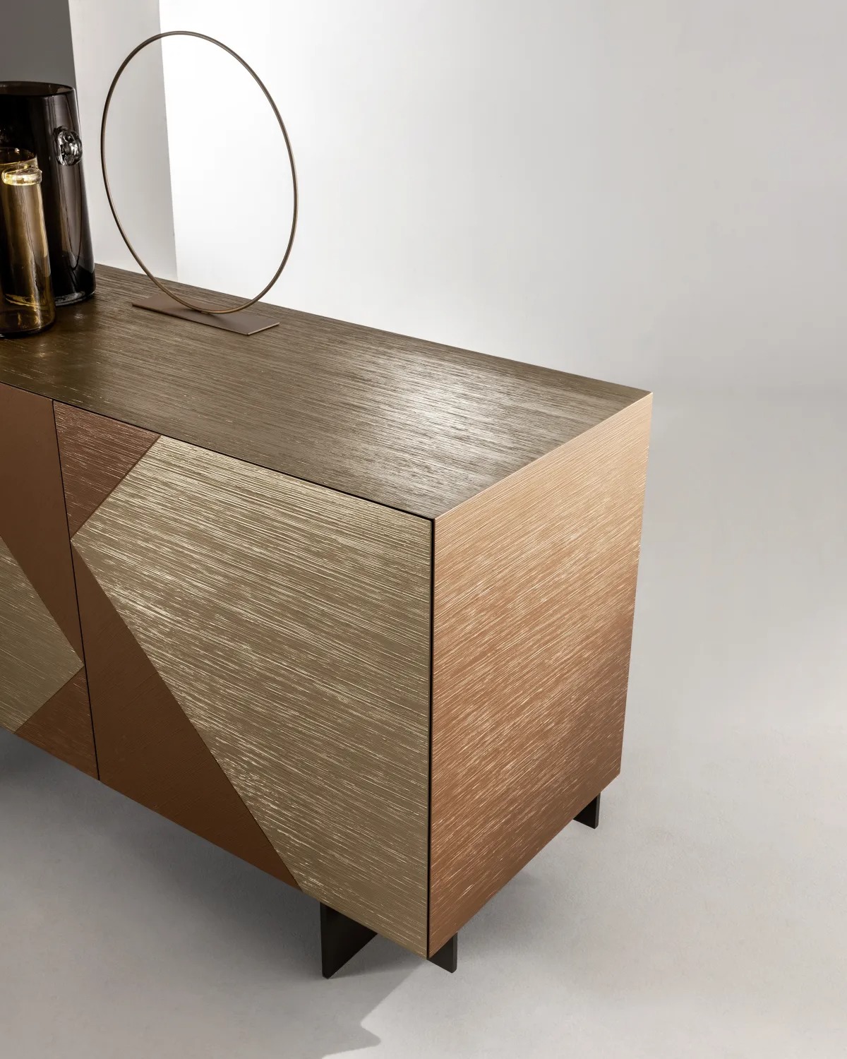 Низкая комод на ножках из металла с распашными декоративными дверцами с открыванием нажатием push-pull.