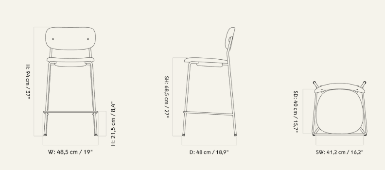 Коллекция стульев Co отличается продуманной формой и теплыми материалами. Кресло Co Counter, разработанное в сотрудничестве с Norm Architects и Els Van Hoorebeeck, имеет широкую спинку и вместительное сиденье и установлено на тонкой, но прочной трубчатой стальной раме. В равной степени удобная и элегантная, универсальная конструкция доступна в двух вариантах — со стойкой и барной стойкой, что позволяет выбрать высоту, наиболее соответствующую вашим потребностям. Отделка деревянным шпоном и обивкой позволяет в дальнейшем адаптировать дизайн. Обе версии оснащены подставкой для ног для дополнительной поддержки и устойчивости при сидении. Кресло Co Counter можно штабелировать, что позволяет установить до 4 стульев друг на друга для эффективного хранения и удобства.