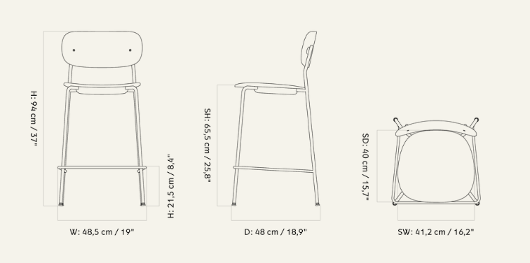 Коллекция стульев Co отличается продуманной формой и теплыми материалами. Разработанный в сотрудничестве с Norm Architects и Els Van Hoorebeeck, барный стул Co с широкой спинкой и вместительным сиденьем установлен на тонкой, но прочной трубчатой стальной раме. В равной степени удобная и элегантная, универсальная конструкция доступна в двух вариантах — со стойкой и барной стойкой, что позволяет выбрать высоту, наиболее соответствующую вашим потребностям. Отделка деревянным шпоном и обивкой позволяет в дальнейшем адаптировать дизайн. Обе версии оснащены подставкой для ног для дополнительной поддержки и устойчивости при сидении. Кресло Co Counter можно штабелировать, что позволяет установить до 4 стульев друг на друга для эффективного хранения и удобства.