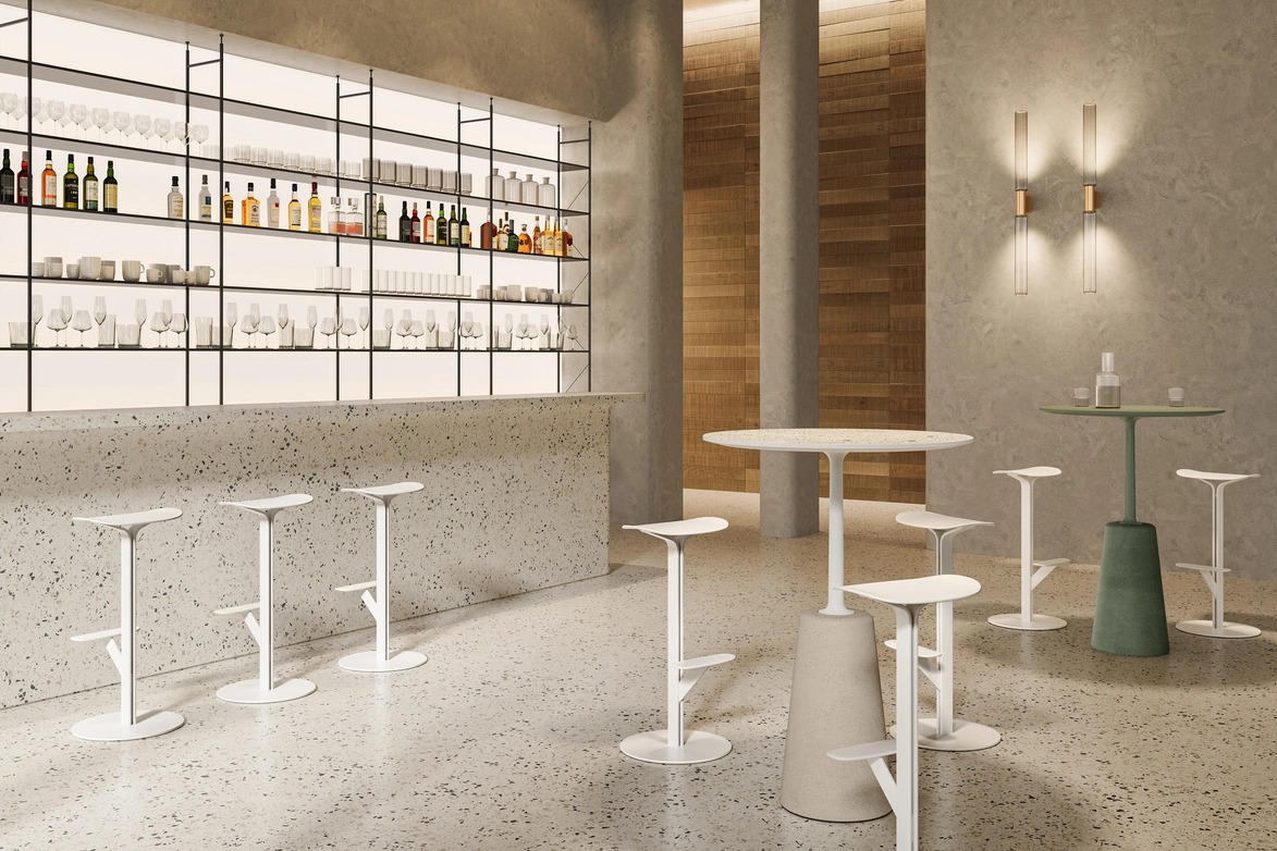 Новый барный стул Duetto, разработанный компанией 967arch для MDF Italia, отличается универсальным дизайном и способностью передать суть компании в изделии, подходящем как для контрактных, так и для бытовых условий. Duetto состоит из двух натянутых тонких металлических пластин, поддерживающих изогнутое полипропиленовое седло, что создает гармоничный диалог между материалами.