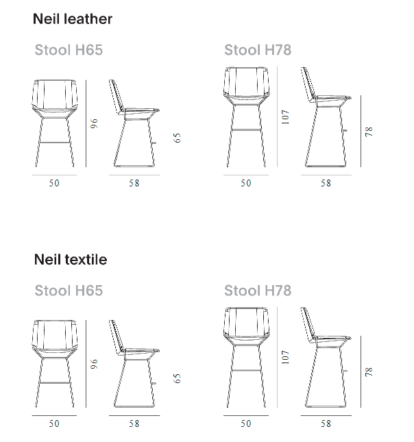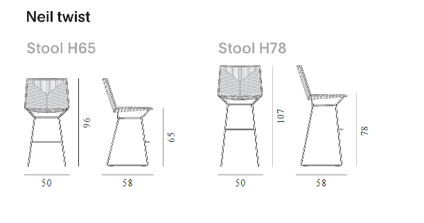 Табурет Neil с конструкцией из стальной проволоки и оригинальным дизайном отличается балансом между элегантностью и функциональностью. Доступный в двух вариантах высоты — 65 см и 78 см — он сочетает в себе эстетику и комфорт, сохраняя при этом легкий силуэт.