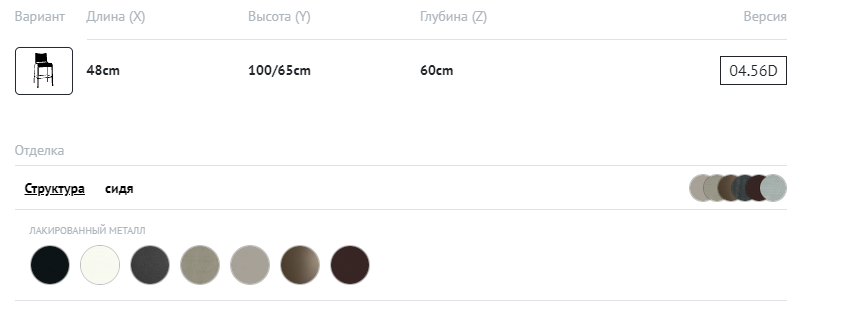 Барный стул со структурой из лакированной стали или хрома, сидение и спинка из текспласта или Мягкого Текспласта.