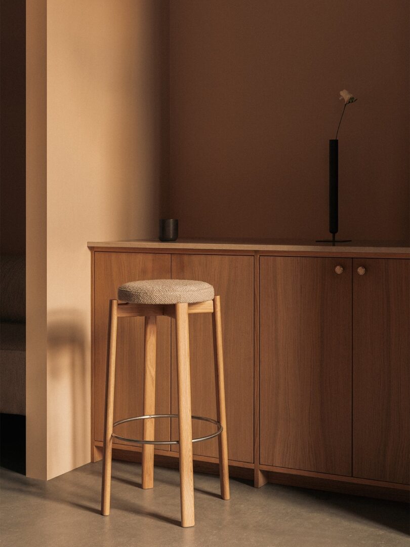 Барный стул Passage, созданный в соответствии с проверенными временем традициями датского краснодеревщика, демонстрирует современный дизайн и традиционные методы обработки древесины. Изготовленный из массива грецкого ореха или дуба с лакированной отделкой, насыщенный цвет и роскошный текстурный рисунок, присущие высококачественным древесным породам, обеспечивают эстетический эффект. Тщательно продуманное и предлагаемое в варианте с мягкой обивкой для дополнительного удобства кольцо для ног из матовой латуни или матовой стали обеспечивает комфортное сидение в течение длительного времени, а высота столешницы идеально подходит для кухонь, баров и других мест общего пользования, что делает его универсальным дизайном, в котором функциональность легко сочетается с комфортом. Его оригинальная конструкция в виде плоской упаковки способствует активному участию в процессе сборки.