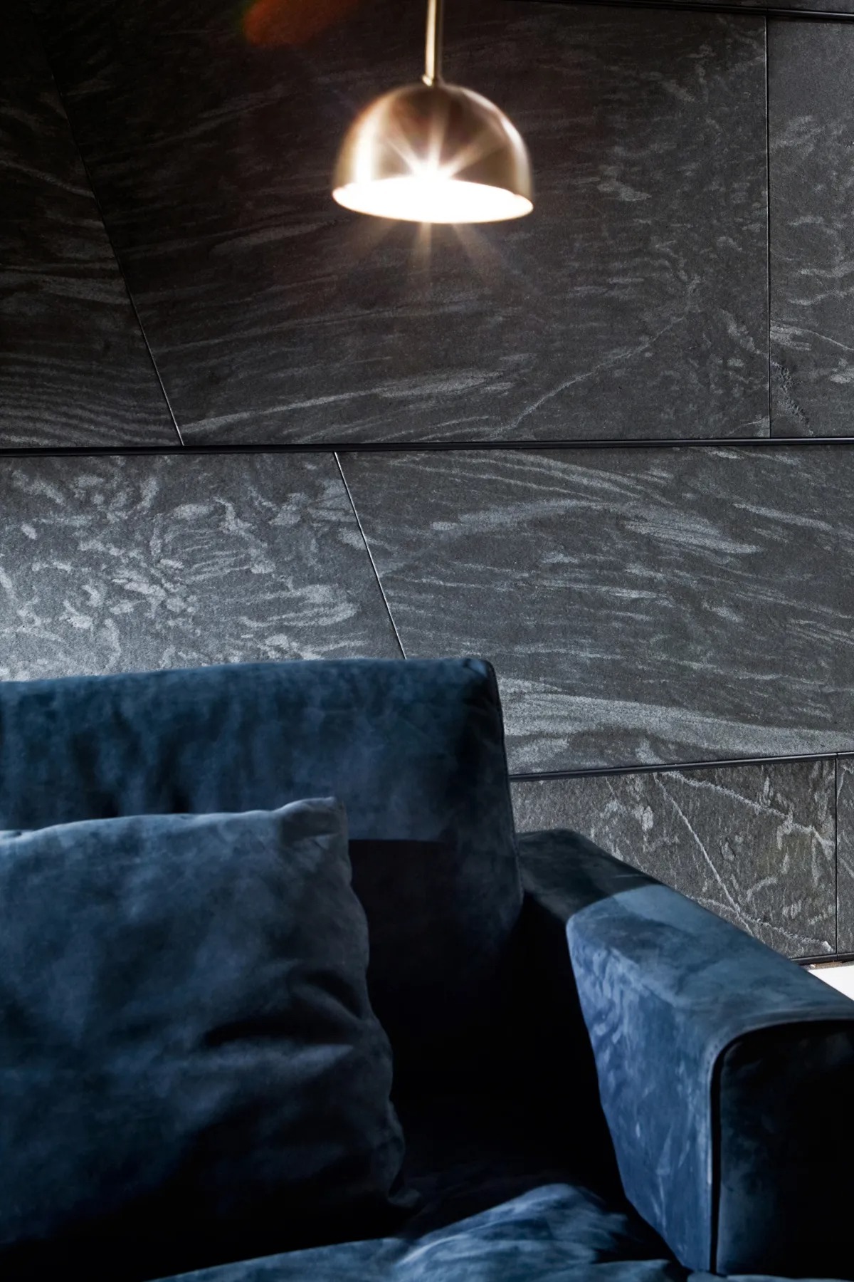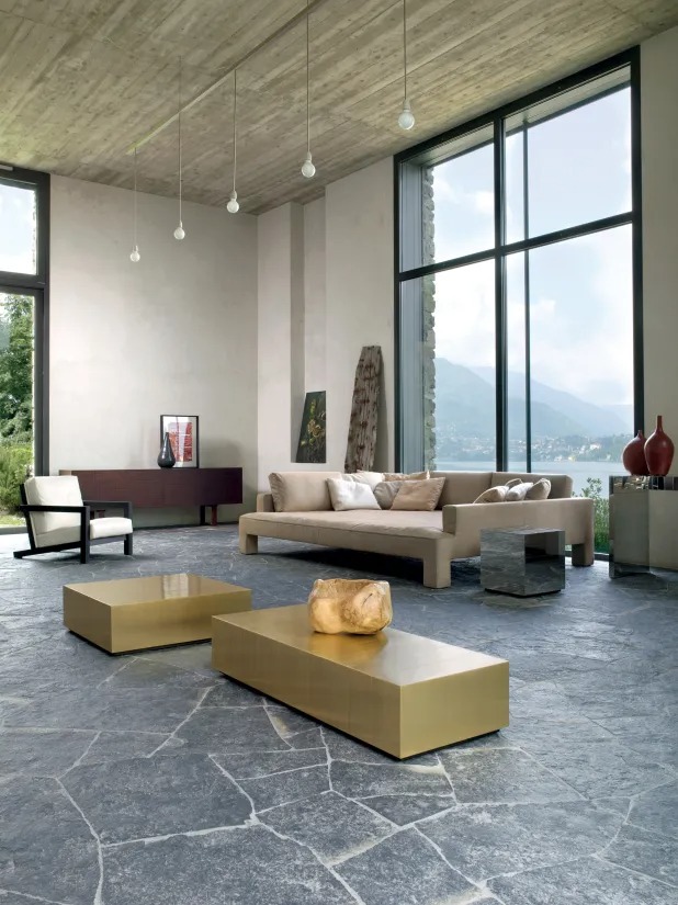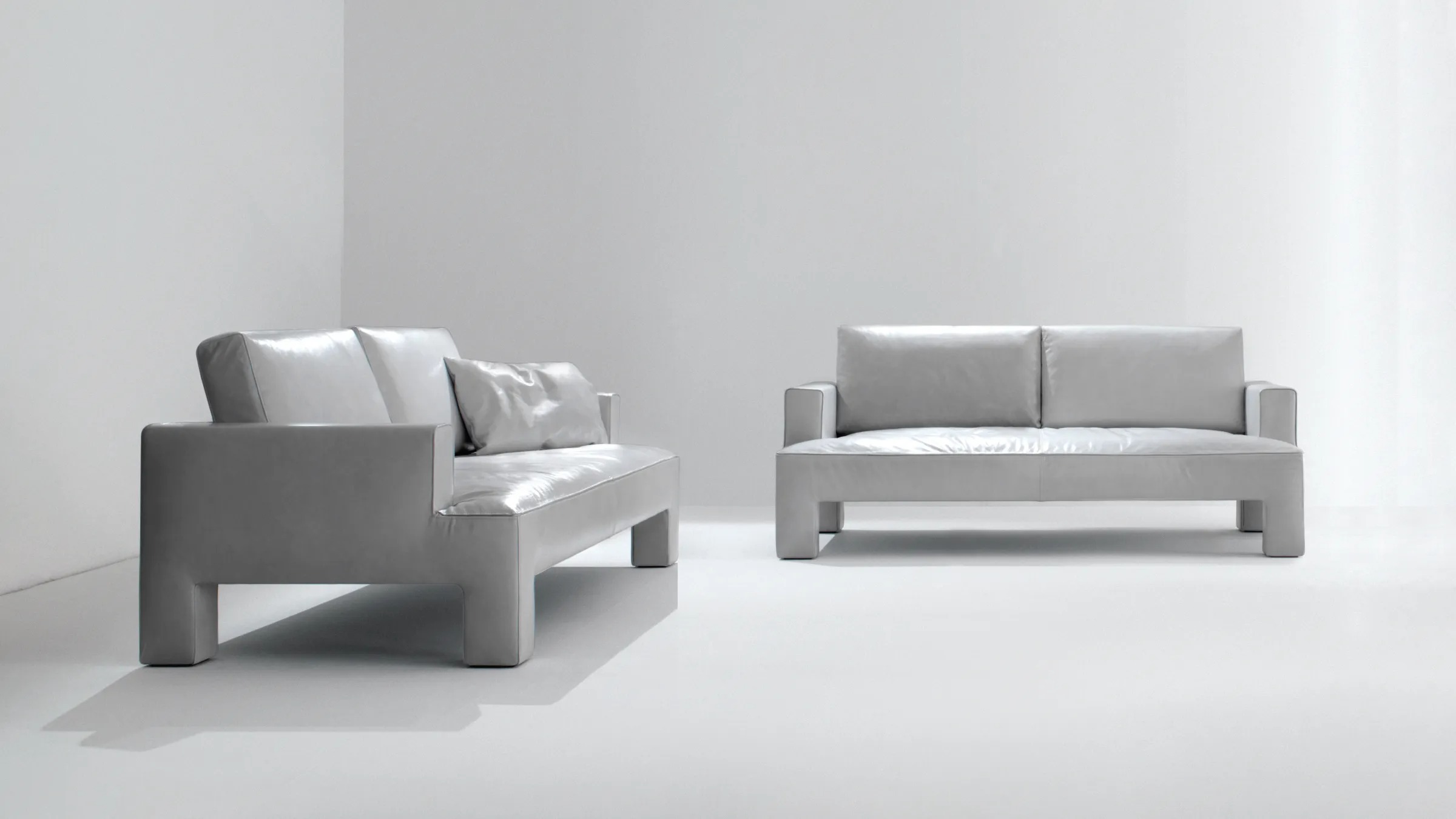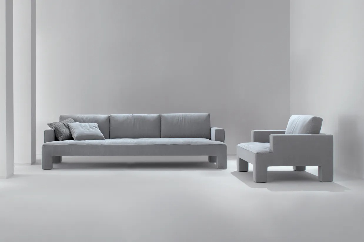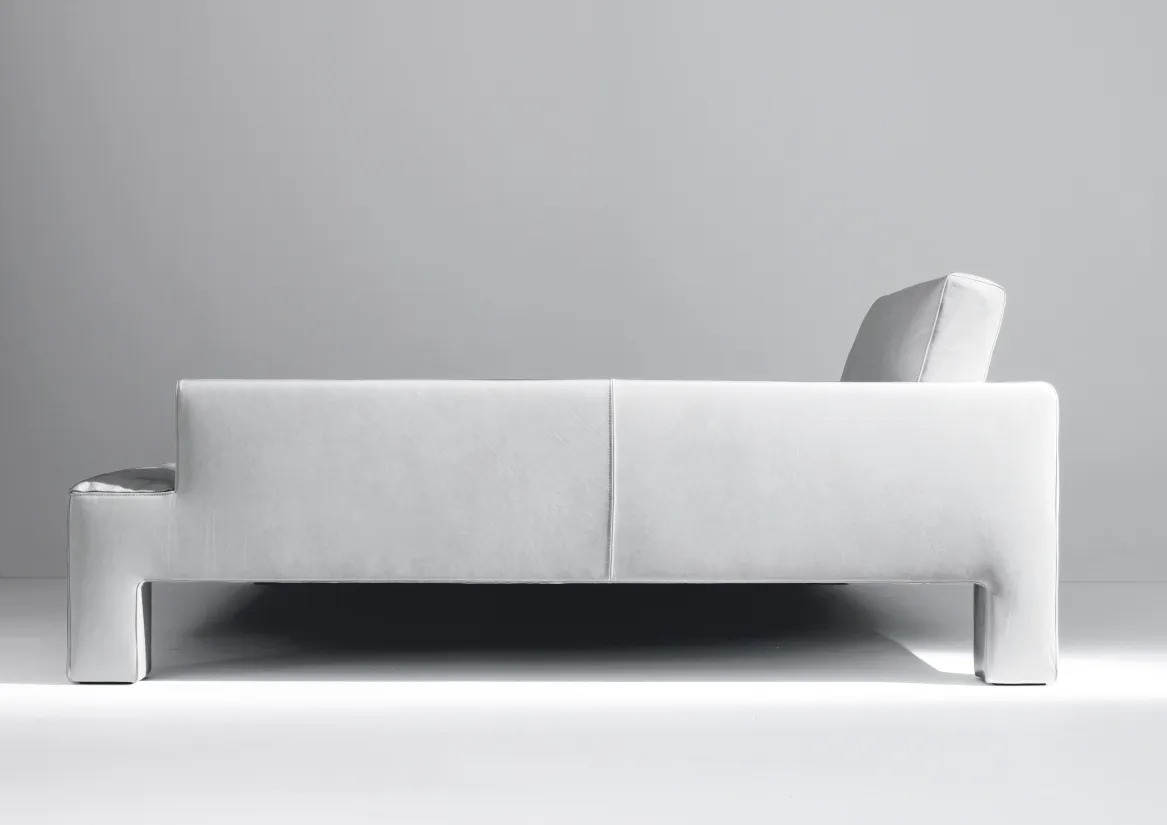 Модульная система сидений, характеризующаяся прямоугольными ножками, встроенными в обивку и обтянутую кожей, бархатом или тканью.