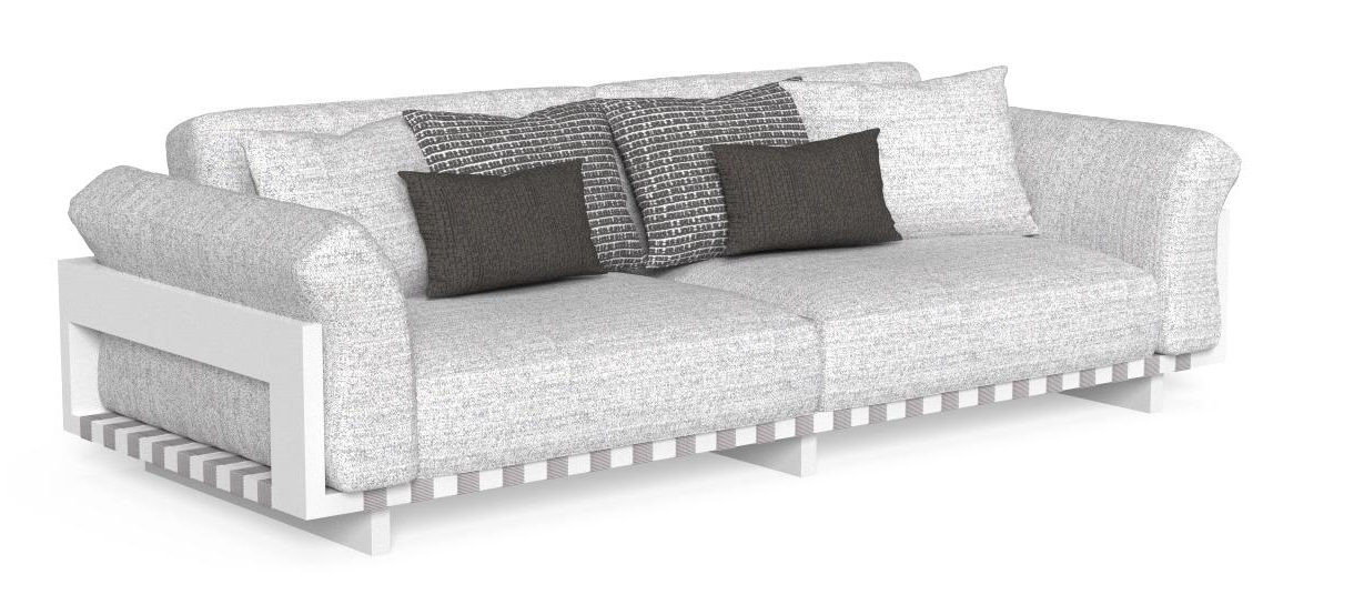 3-местный диван Argo Alu отличается алюминиевой конструкцией с широкими боковыми поясами. Ремни elsatic расположены по всему периметру сиденья, создавая игру цвета. Мягкие и удобные обволакивающие подушки придают этому предмету мебели современный вид, который идеально подходит для отдыха на свежем воздухе. Основание в виде полозьев создает ощущение волшебной подвески обивки, уравновешивая пропорции. Подушки, набитые быстросохнущей пеной, имеют съемные чехлы, что делает Argo Alu идеальным диваном для уютной гостиной на открытом воздухе.