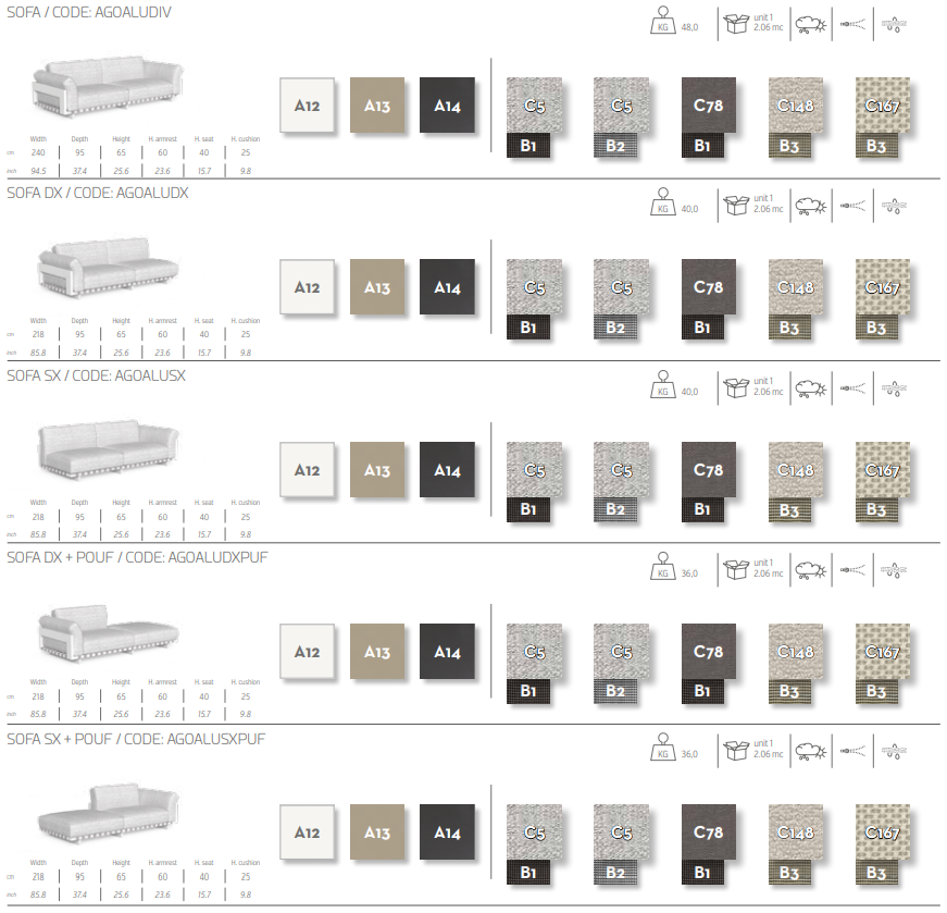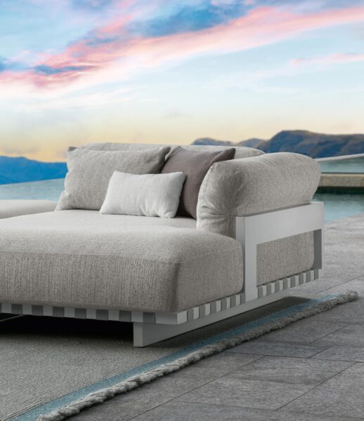Несколько комбинаций, предлагаемых модульным диваном из коллекции Argo Alu, делают его идеальным продуктом для создания вашего собственного жилого пространства на открытом воздухе. Эстетические изыскания, свобода композиции, прочная алюминиевая конструкция с видимыми ремешками в сочетании с мягкими подушками с набивкой делают этот диван идеальным предметом мебели для проведения особых моментов отдыха на свежем воздухе.