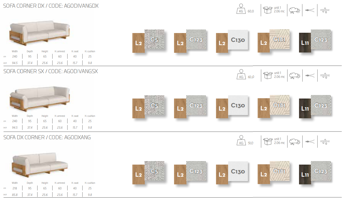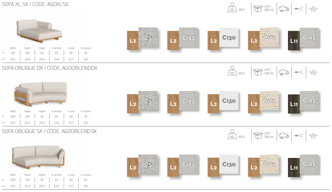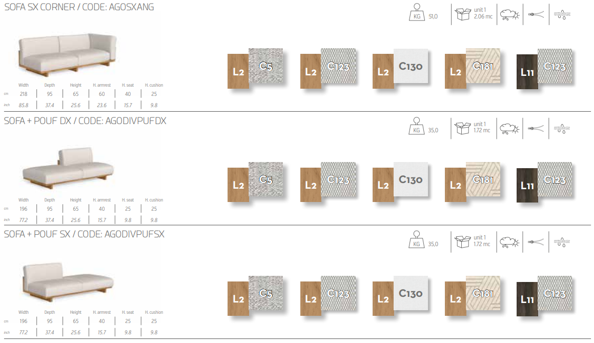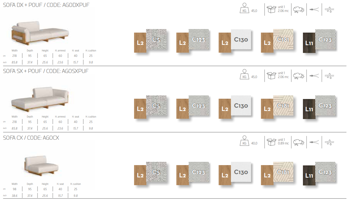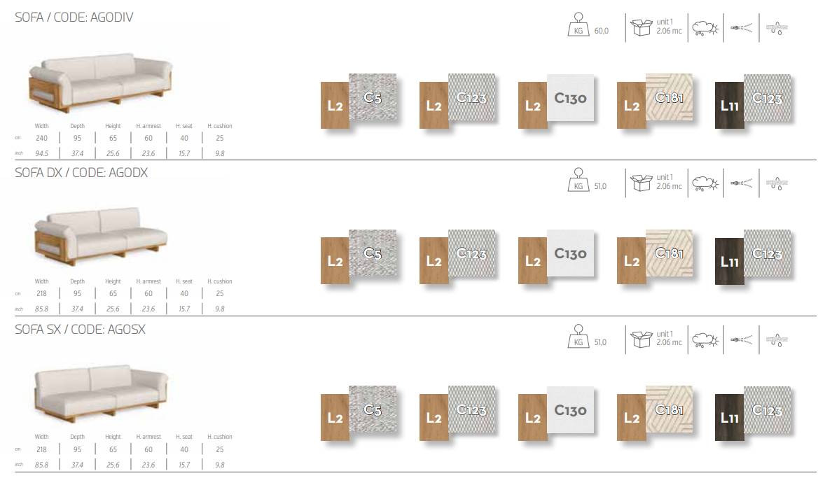 Различные комбинации модульных диванов делают Argo идеальным решением для украшения любого помещения на открытом воздухе. Тема деревянного ящика, на которую вдохновлена коллекция, отчетливо проявляется во всех возможных сочетаниях, подчеркиваемая инновационным использованием в конструкции дерева Аккойя. Глубокое и удобное сиденье обтянуто тщательно подобранными тканями со съемными чехлами, устойчивыми к атмосферным воздействиям. Благодаря своим характеристикам диван идеально подходит для оформления помещений на открытом воздухе.