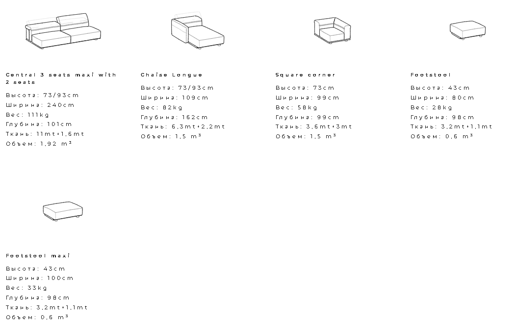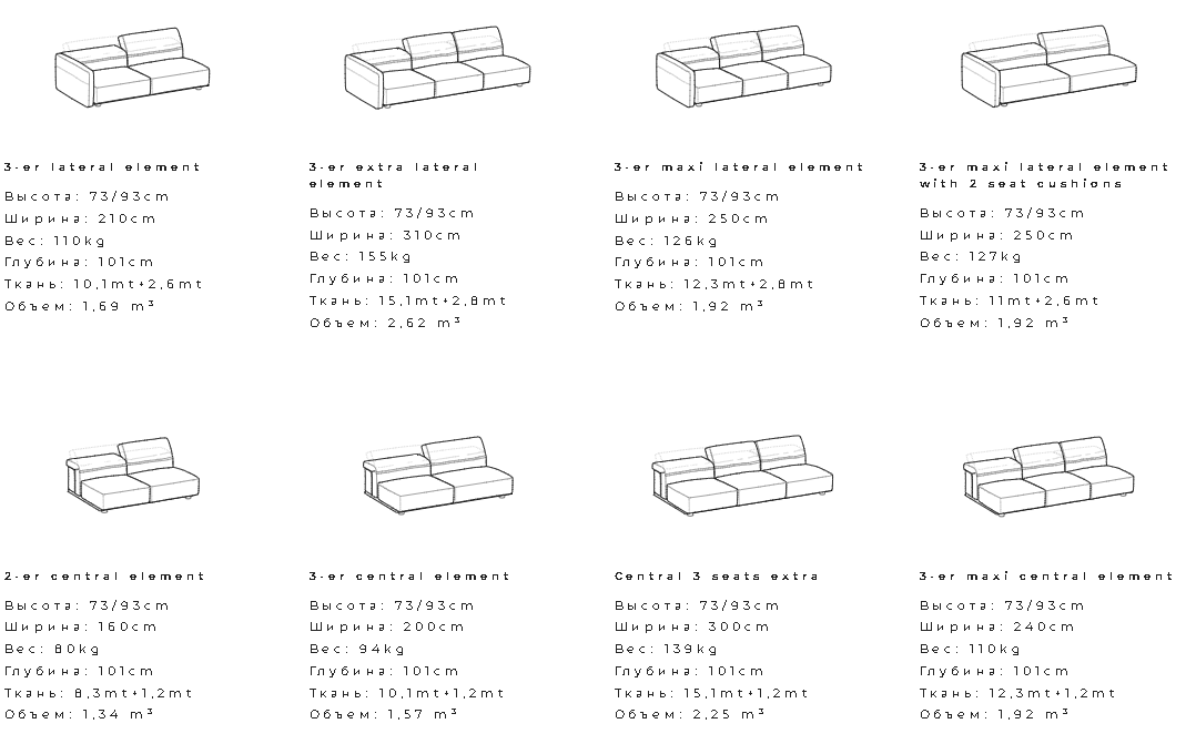 Выраженная горизонтальная структура дивана ненавязчиво подчеркнута изящными подлокотниками, которые являются отличительной особенностью модели в различных вариантах и конфигурациях. Диван строгих и сдержанных очертаний дополнен спинкой с наклонным механизмом, позволяющим занять идеальное положение для отдыха, чтения, беседы… И жизни в целом. Предусмотрено два варианта модели: напольный диван и диван приподнятой конструкции, на тонких ножках; оба варианта отличает окрашенный или обтянутый кожей металлический каркас. Линейные и угловые диваны, монолитной и модульной структуры, создают обстановку, элегантность которой — вне времени.