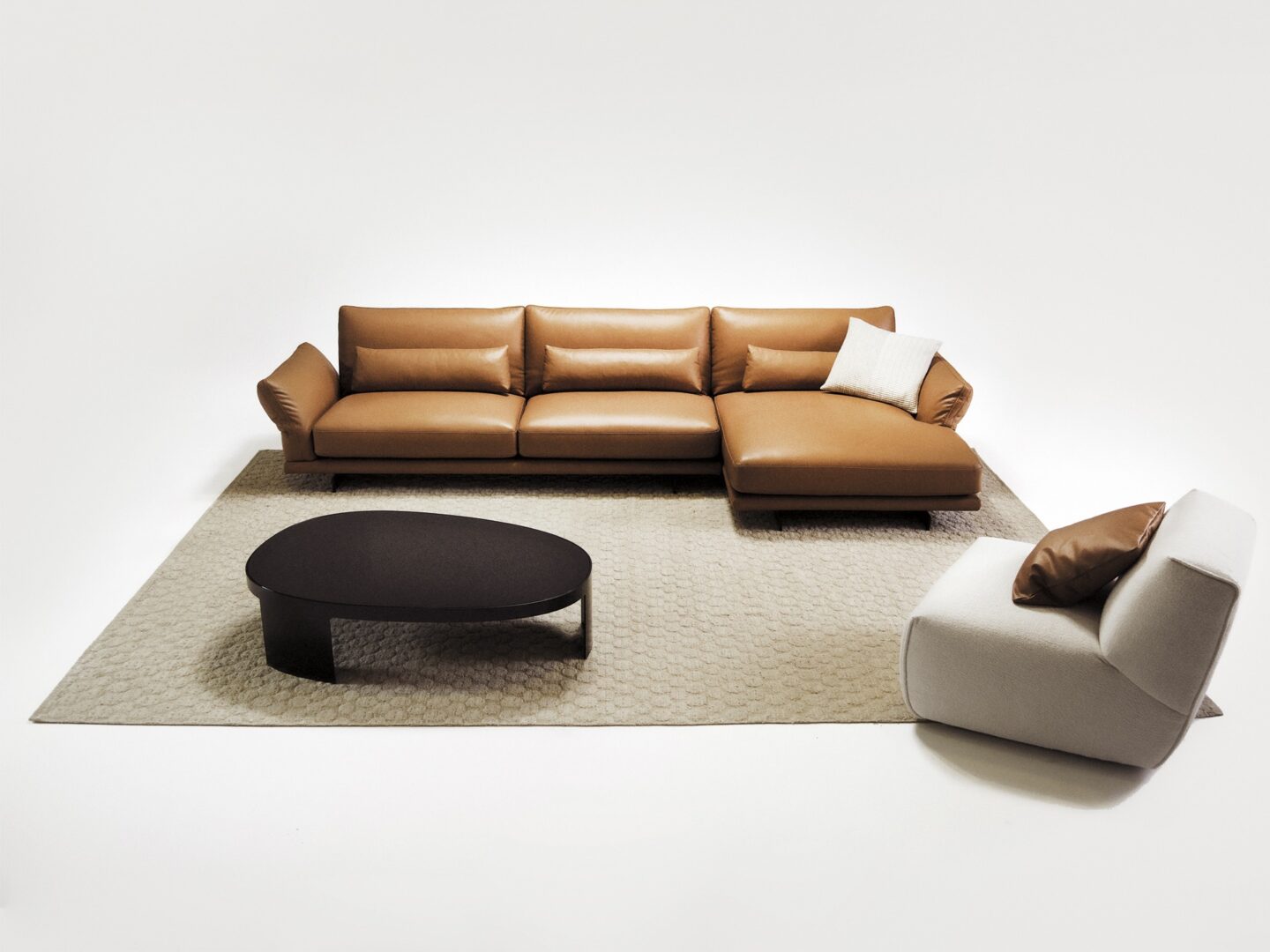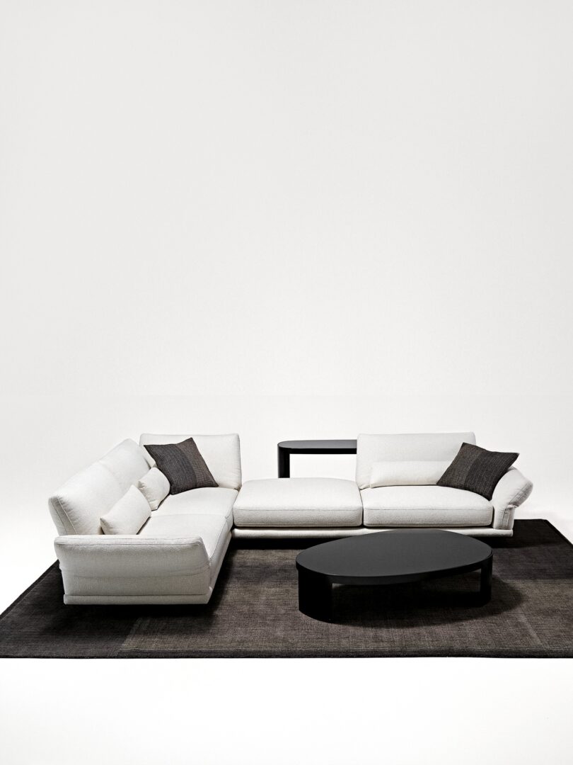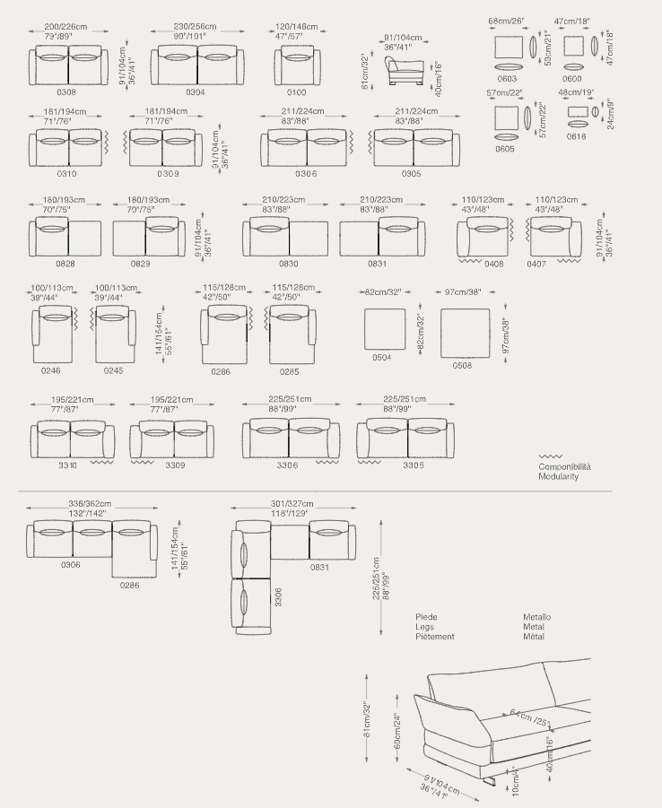Современный пересказ классической модели модульного дивана с мягкой конструкцией, низкой спинкой, большим сиденьем и двойной съемной подушкой спинки.