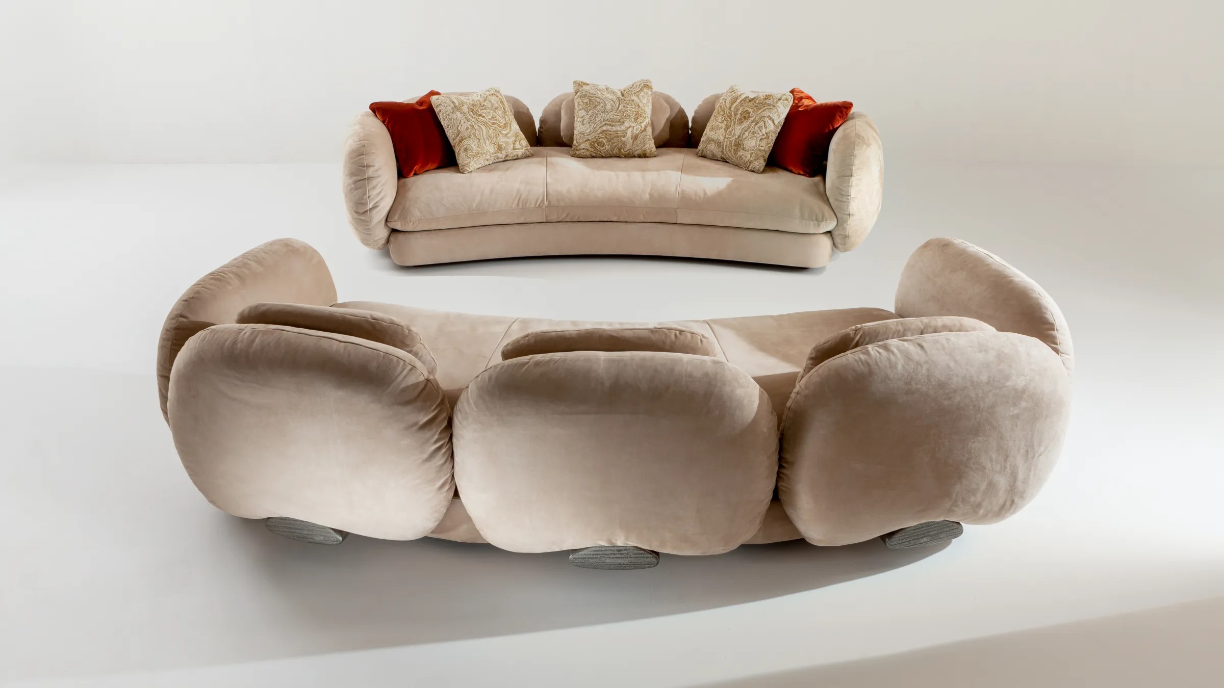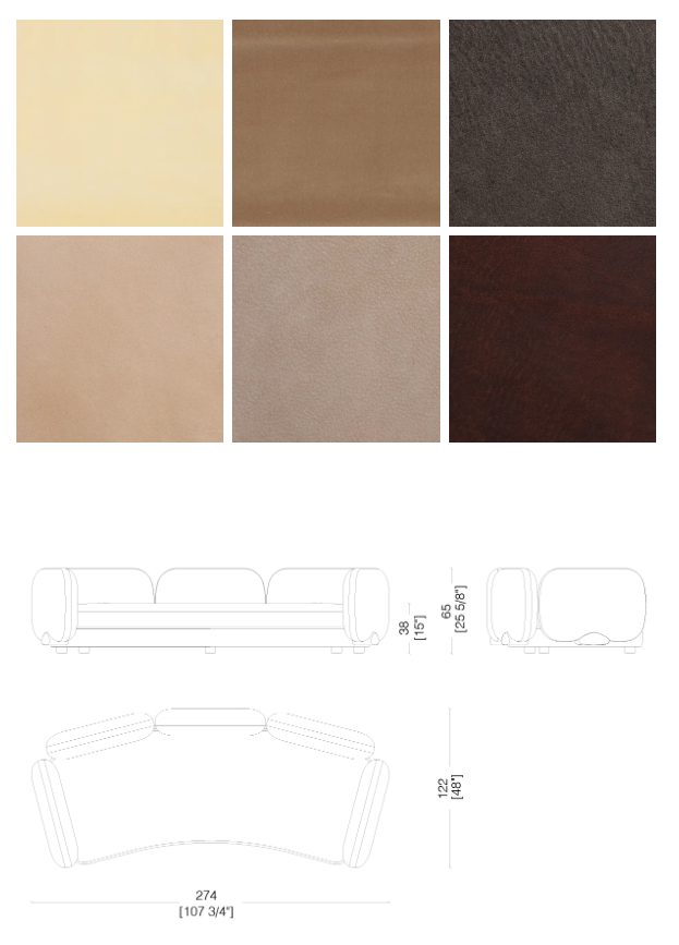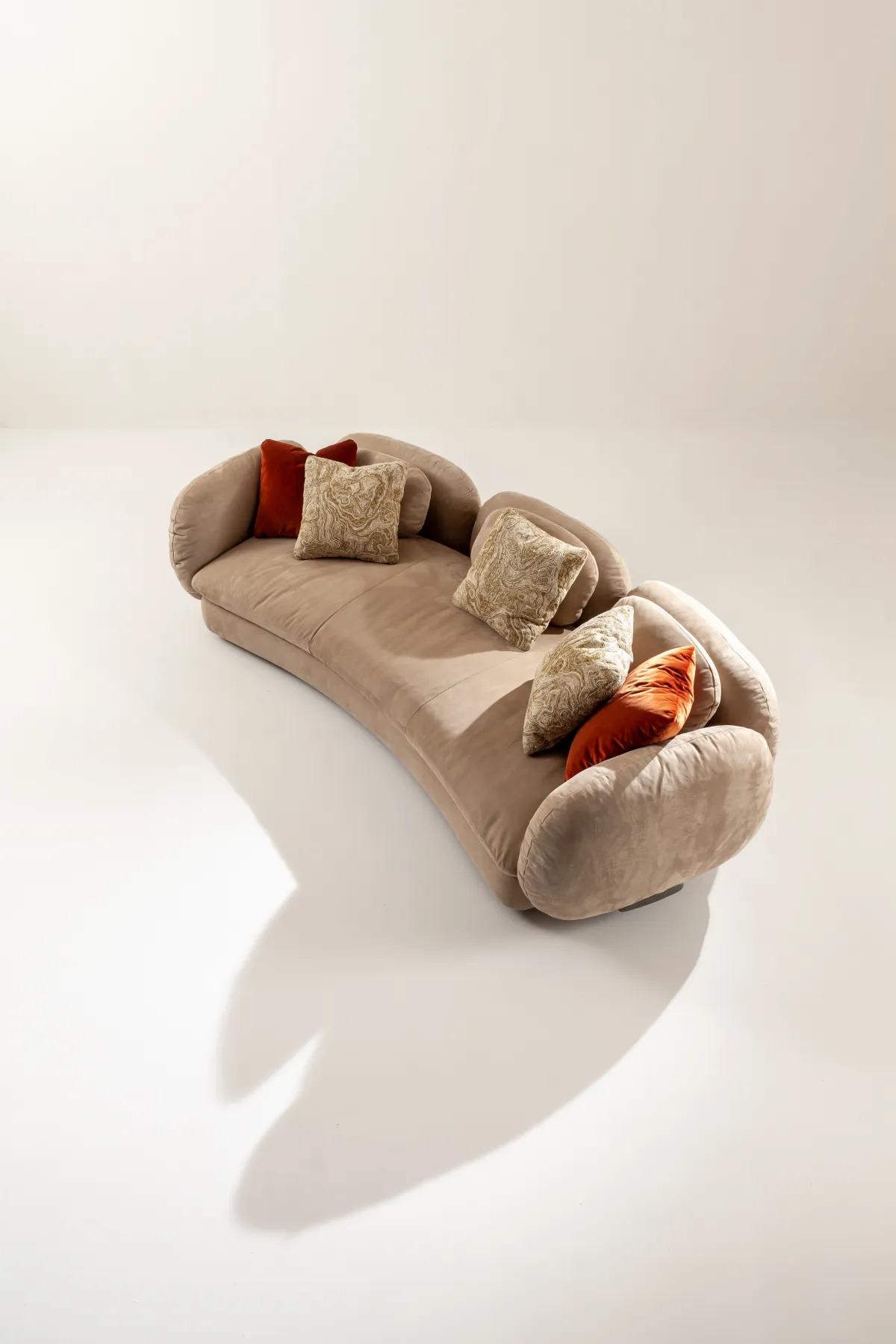 Обитый диван, доступный в трёх- или четырёхместной версии, с возможностью полного индивидуального изготовления по запросу.