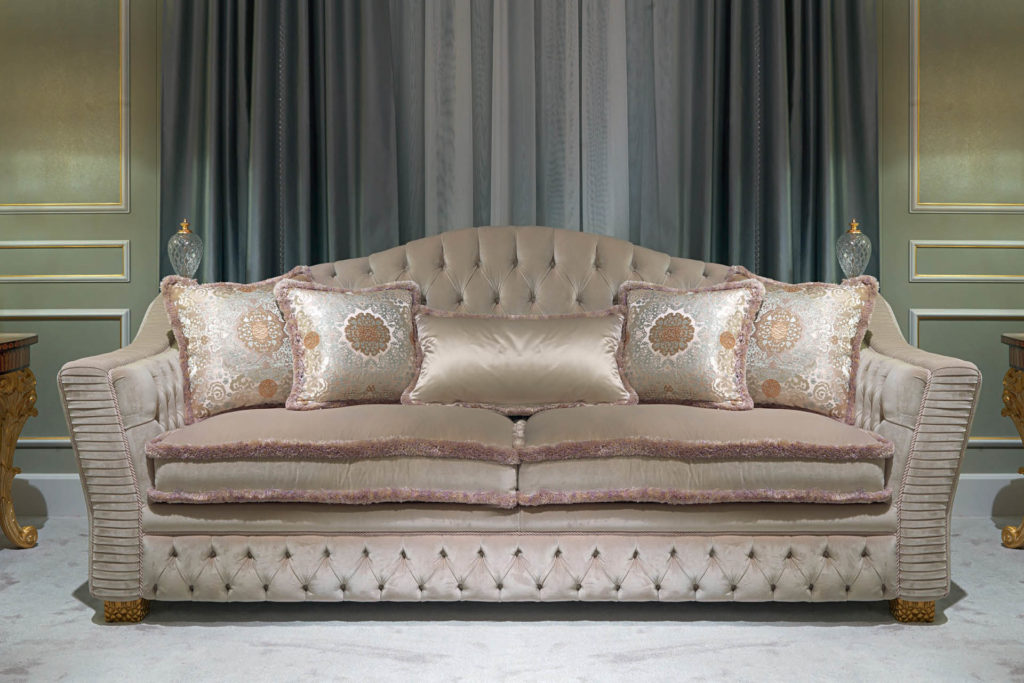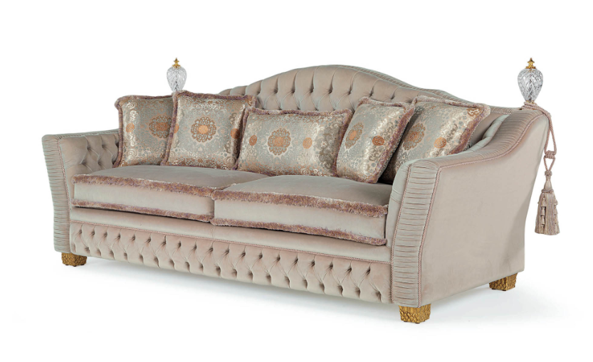 Диван BORROMEO-это икона классической коллекции ZANABONI, изысканный диван с ручной работой в стиле капитонне и плиссе. BORROMEO-это изысканный диван, освещенный декоративными подушечками и элементами из хрусталя ручной работы.