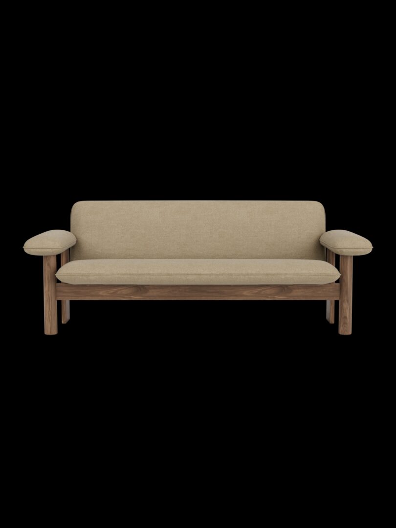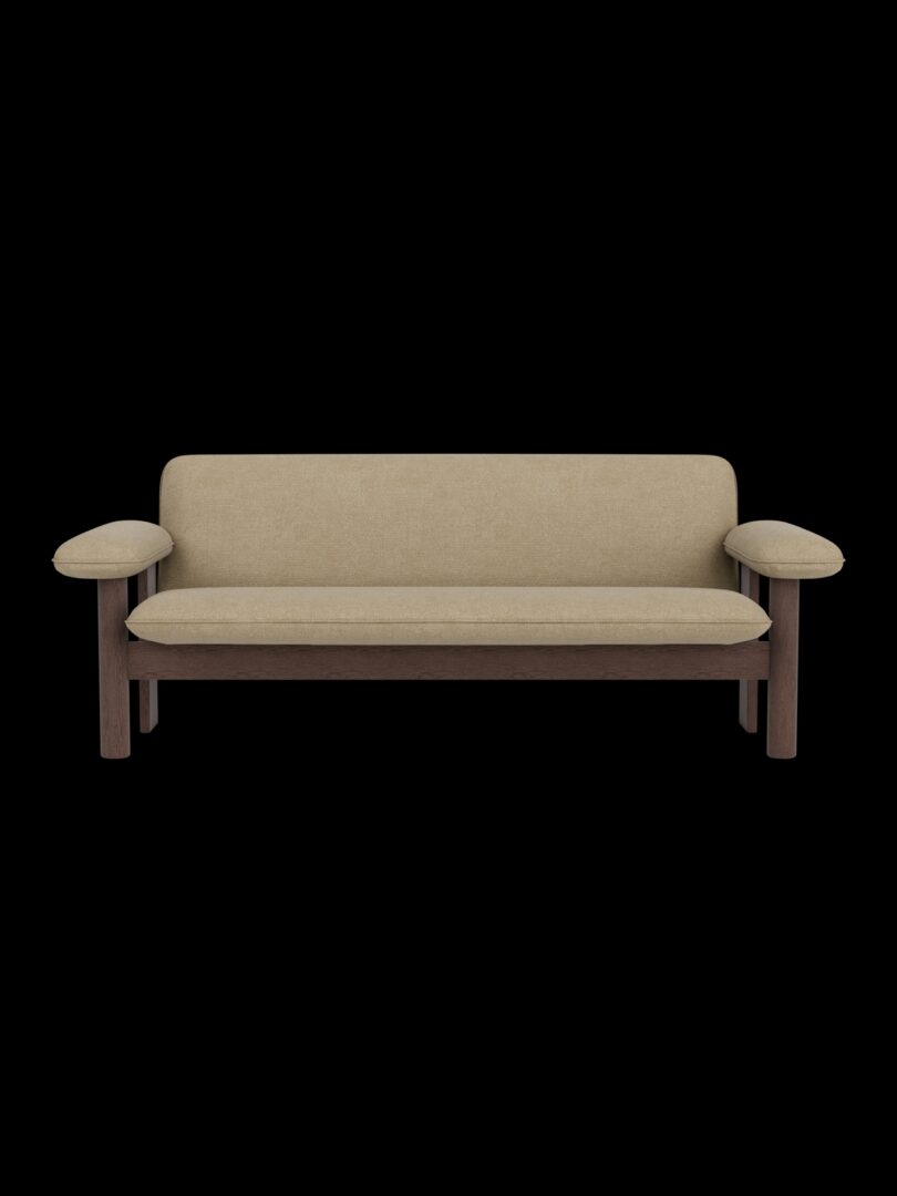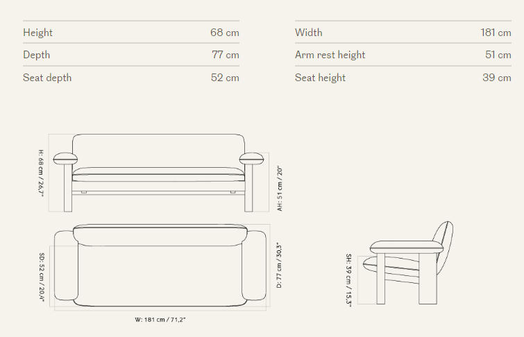 Диван Brasilia — Достаточно большой, чтобы с легкостью откидываться назад. Его смелая и привлекательная форма состоит из каркаса из цельного дерева с закругленными передними ножками, выпуклыми подлокотниками и мягкой обивкой.