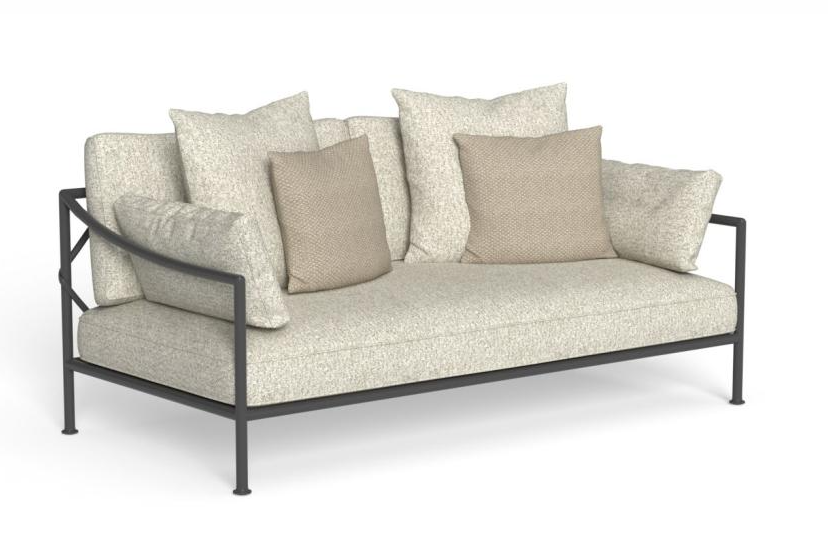 2-местный диван Capri сочетает в себе элегантность и комфорт в современном дизайне. Металлический каркас придает ему изысканный и современный вид, обеспечивая устойчивость и долговечность. Обивка выполнена из нейтральной ткани с мягкой текстурой, которая подходит к любому стилю декора. Подушки стратегически расположены таким образом, чтобы обеспечить оптимальную поддержку, что делает этот диван идеальным для современных жилых помещений или для придания стильного вида крытой террасе, создавая уютное место для отдыха.