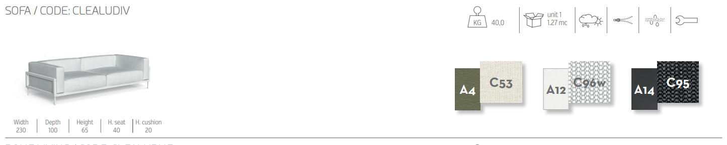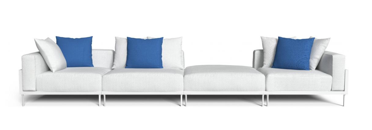 Модульный уличный диван CleoSoft Alu является частью коллекции, разработанной Марко Ачербисом, в которой жесткие и геометрические алюминиевые конструкции поддерживают удобные и важные сиденья, создавая идеальный баланс между формой и объемом. Модульный диван состоит из 2 квадратных элементов и пуфа, которые позволяют создавать множество комбинаций для достижения идеальной формы вашего пространства: модуль с двойной спинкой, который может выполнять функцию правого, левого или углового модуля; модуль с одной спинкой, с помощью которого можно составить нужную длину, и пуф-элемент. с помощью которого вы можете создавать удлиненные диваны. Подушки изготовлены из ткани, легко снимаются, легко стираются и устойчивы к атмосферным воздействиям. Быстросохнущая поролоновая набивка.