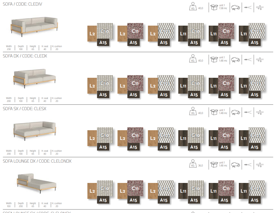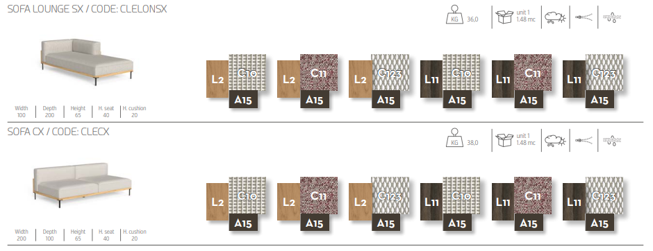 Жесткие и геометрические конструкции, характерные для коллекции CleoSoft Wood, поддерживают объемные сиденья этого уличного модульного дивана, создавая идеальный баланс между формой и объемом. Модульный диван состоит из двух прямоугольных торцевых модулей (левого и правого) и двух удлиненных элементов (левого и правого), что позволяет создавать множество комбинаций для достижения желаемой формы вашего помещения. Тканевые подушки со съемными чехлами легко стираются и устойчивы к атмосферным воздействиям. Обивка изготовлена из быстросохнущего поролона. Большие, мягкие и уютные сиденья идеально подойдут для стильного оформления любого открытого пространства.