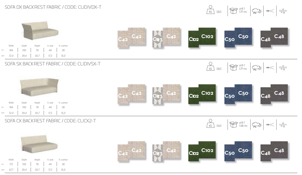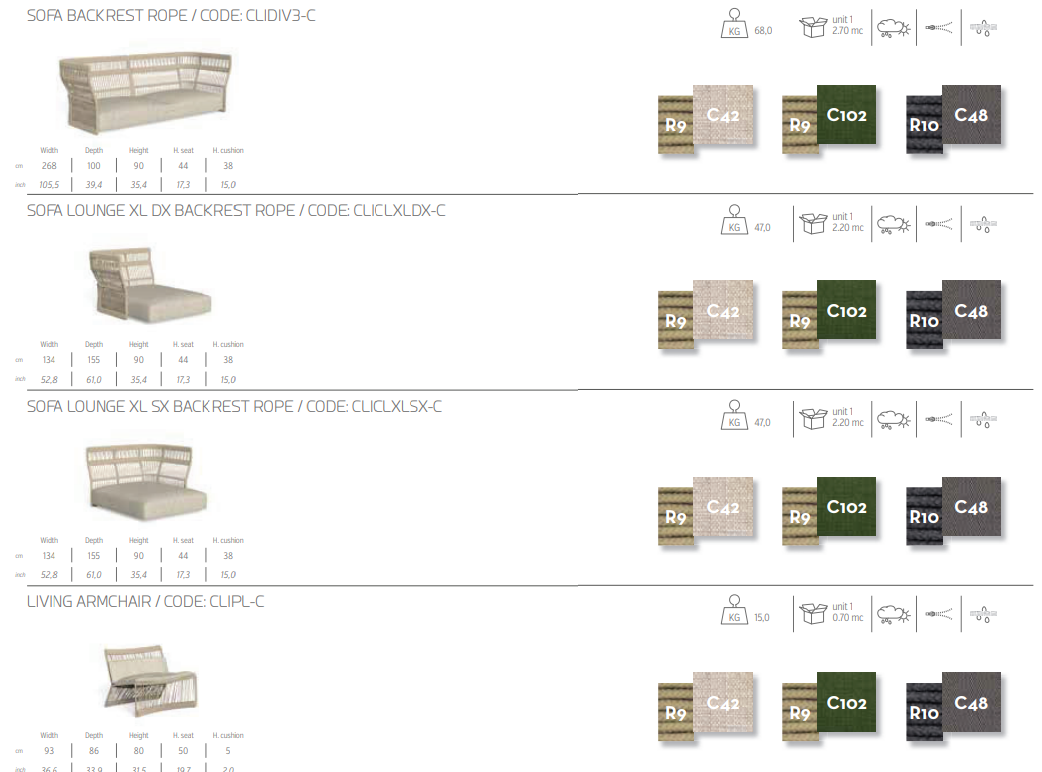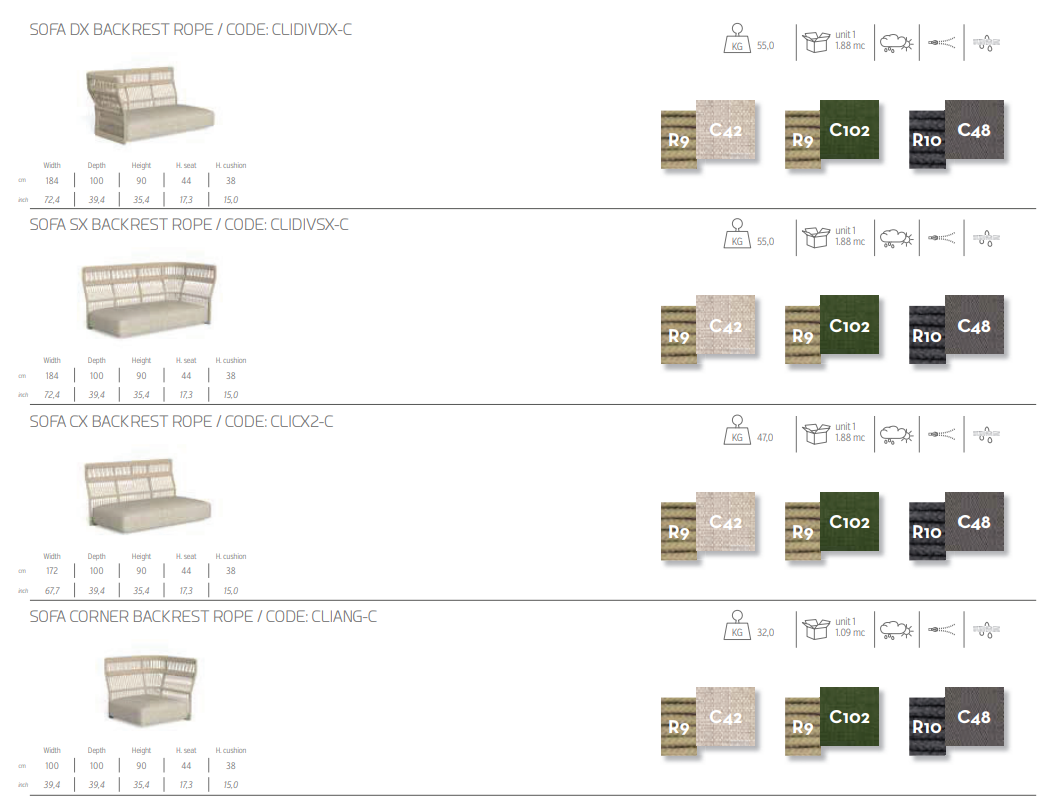 Форма широких сидений от Cliff характерна для этого дивана. В этом варианте канатная оплетка заменена тканью, покрывающей стальной трубчатый каркас. Широкое сиденье является прекрасным примером уникальной формы элементов Cliff.
