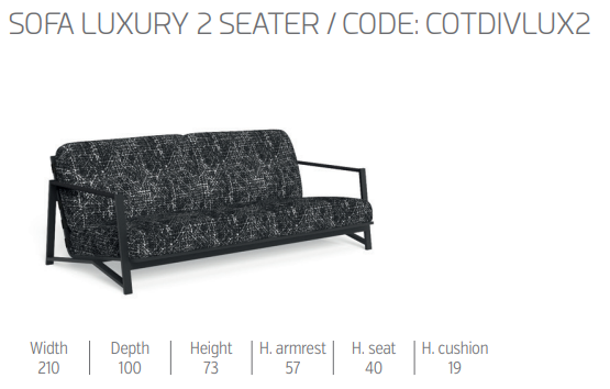 Роскошный 2-местный диван Cottage, отличающийся простыми геометрическими линиями, идеально подойдет для украшения ваших открытых площадок. Алюминиевая рама и эластичные ремни обеспечивают устойчивость изделия. Подушки с быстросохнущей поролоновой набивкой обиты съемной тканью, устойчивой к атмосферным воздействиям. Изделие дополнено морской веревкой.