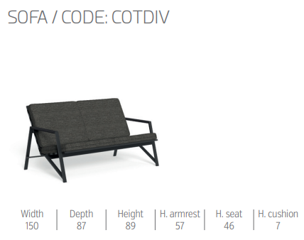 Диван из коллекции Cottage выполнен в деревенском стиле, напоминающем о сиденьях на Дальнем Западе. В диване Cottage алюминий каркаса и синтетические ремни сиденья и спинки гармонично сочетаются с более традиционными материалами, такими как канат, закрепленный на подлокотниках.