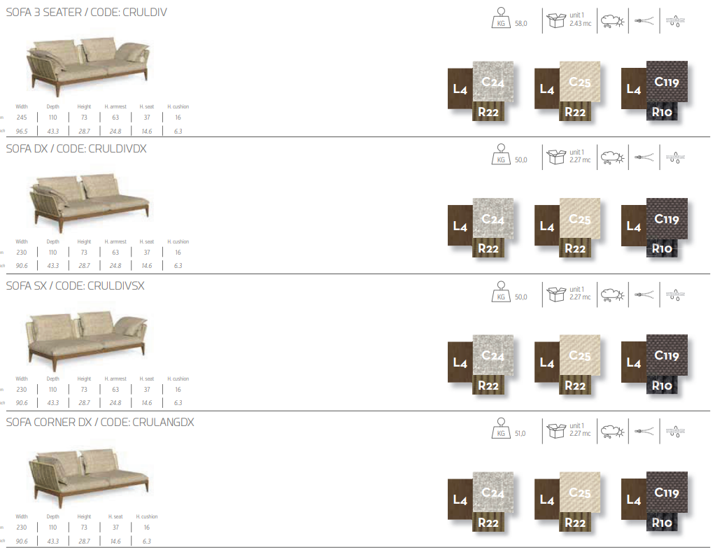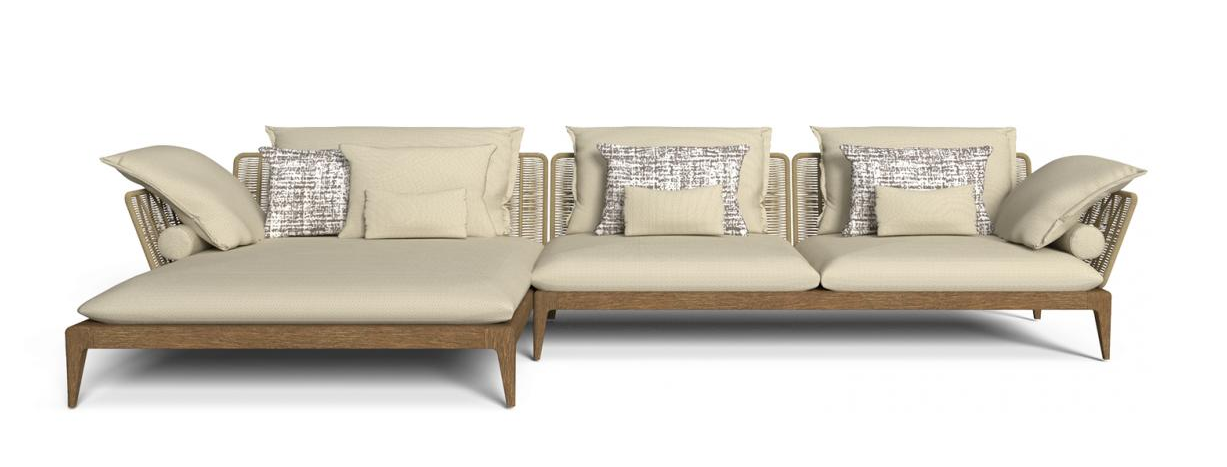 Модульный диван из коллекции Cruise Teak, обладающий исключительной универсальностью, идеально подойдет для оформления гостиной на открытом воздухе. Полностью модульный, этот продукт сохраняет качество и стиль коллекции. Конструкция его модулей действительно выполнена из дерева. Синтетическая веревка используется для обивки подлокотников и спинки. Тщательно подобранная ткань для подушек делает диван устойчивым к атмосферным воздействиям. Естественные и светлые цвета, предлагаемые в этой коллекции, а также различные комбинации, предлагаемые модулями изделия, делают модульный диван идеальным для любого внешнего окружения.