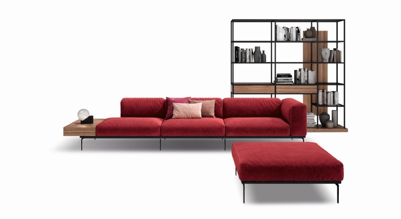 Серия секционных диванов со структурой из фанеры и массива бука, окрашенная металлическая основа в доступной отделке. Обивка выполнена из полуриетана с гибкой пеной на разных высотах с обивкой из гусиного пуха. Обивка изготавливается из ткани или кожи. Он не снимается, за исключением подушек сидений и спинки, если они сделаны из ткани. Аксессуары: съемная подушка из гусиного пуха из ткани или кожи, доступные размеры: 30 x 40 / 50 x 50 / 60 x 60