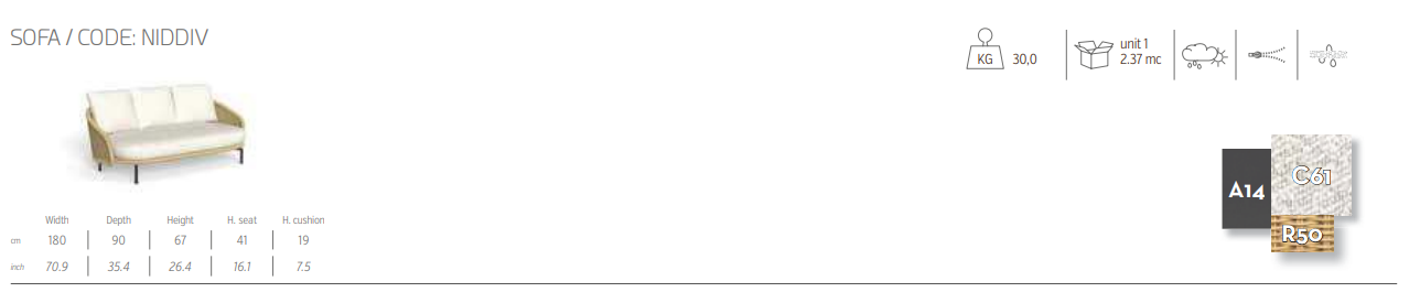 Диван Nido — это воплощение комфорта и элегантности для открытых пространств. Его конструкция отличается мягкими и обволакивающими линиями, а плетеная спинка в стиле плетеной лозы создает естественный и изысканный эффект. Подушки нейтральных оттенков создают уютное и расслабляющее сидение, идеально подходящее для небольших уголков отдыха на открытом воздухе. Благодаря компактному дизайну и округлым формам этот диван идеально подходит для украшения террас и садов, создавая атмосферу, которая напоминает уютное убежище.