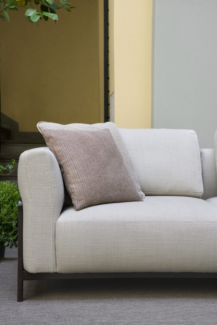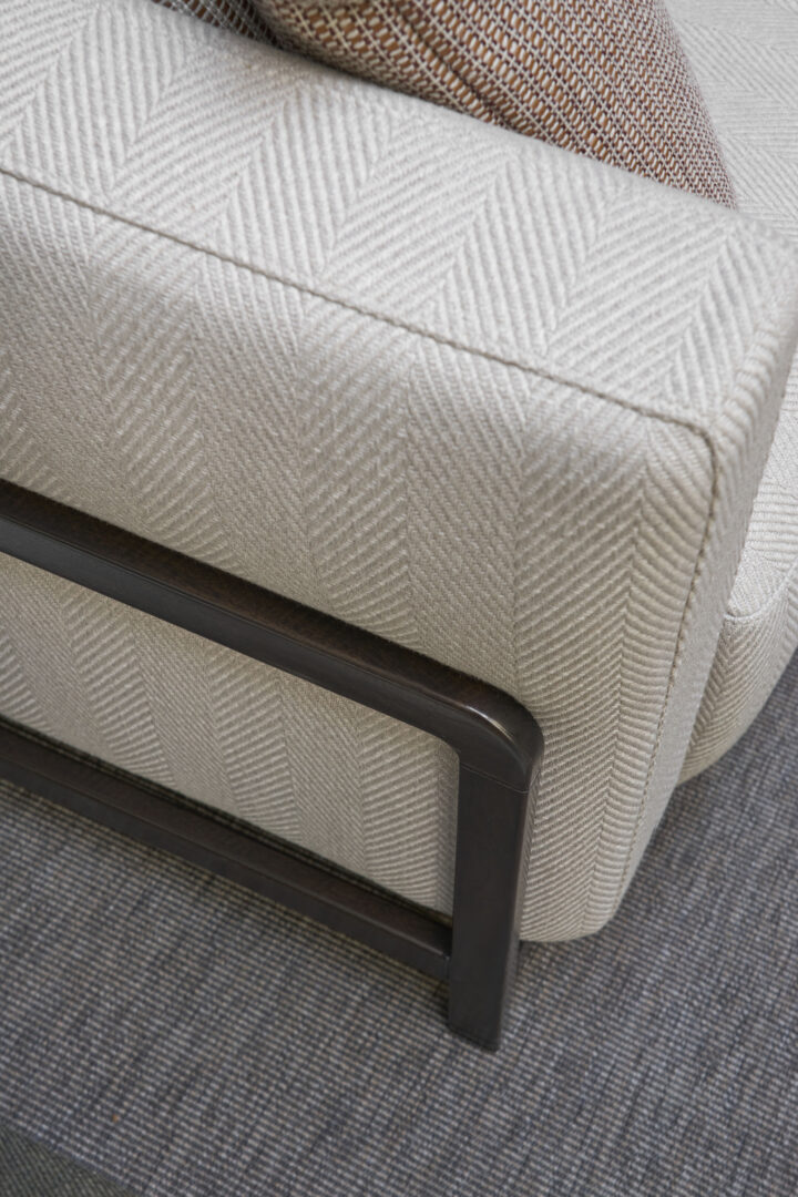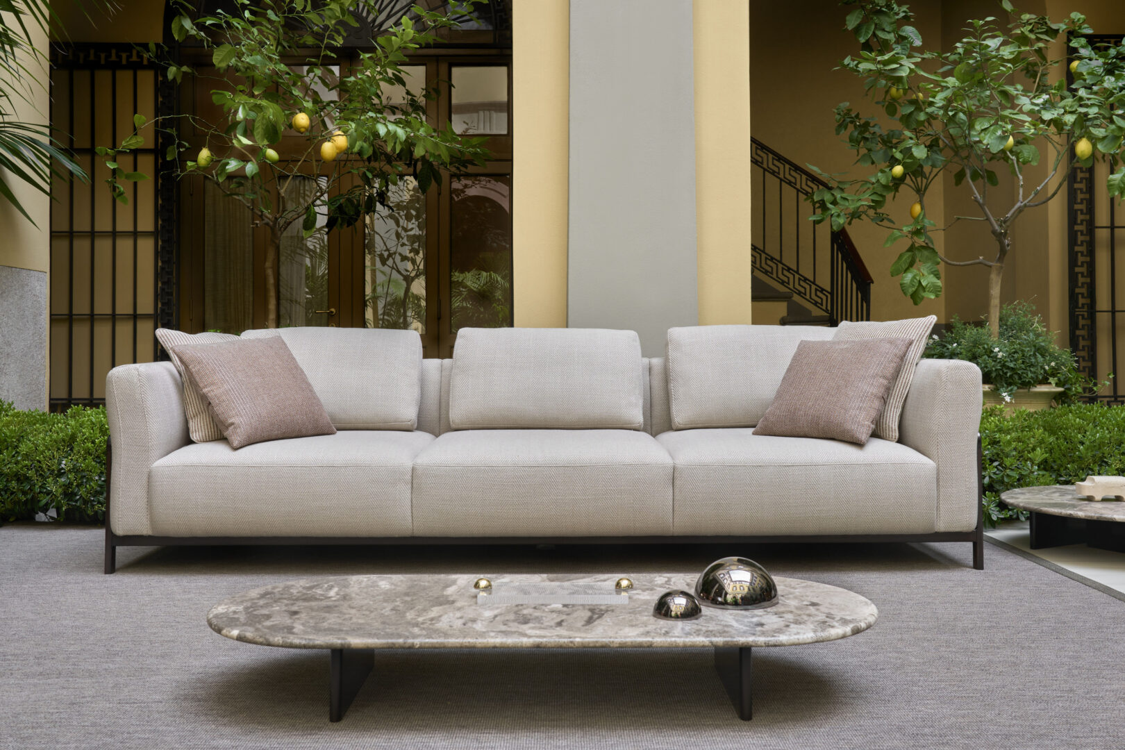 Диван DOMINICK, спроектированный архитектором Энрико Чезаной, обладает всем очарованием линейного дизайна с мягким и располагающим характером. Диван имеет изогнутую конструкцию из массива дерева, которая охватывает всю мягкую спинку и мягкое сиденье, что является примером мягких форм и легкости.