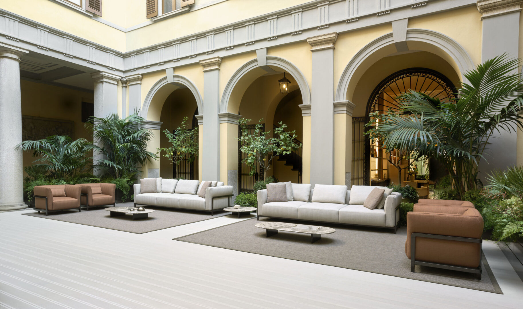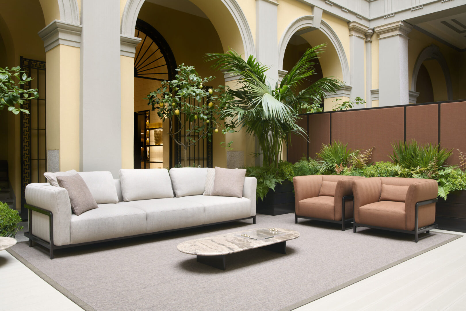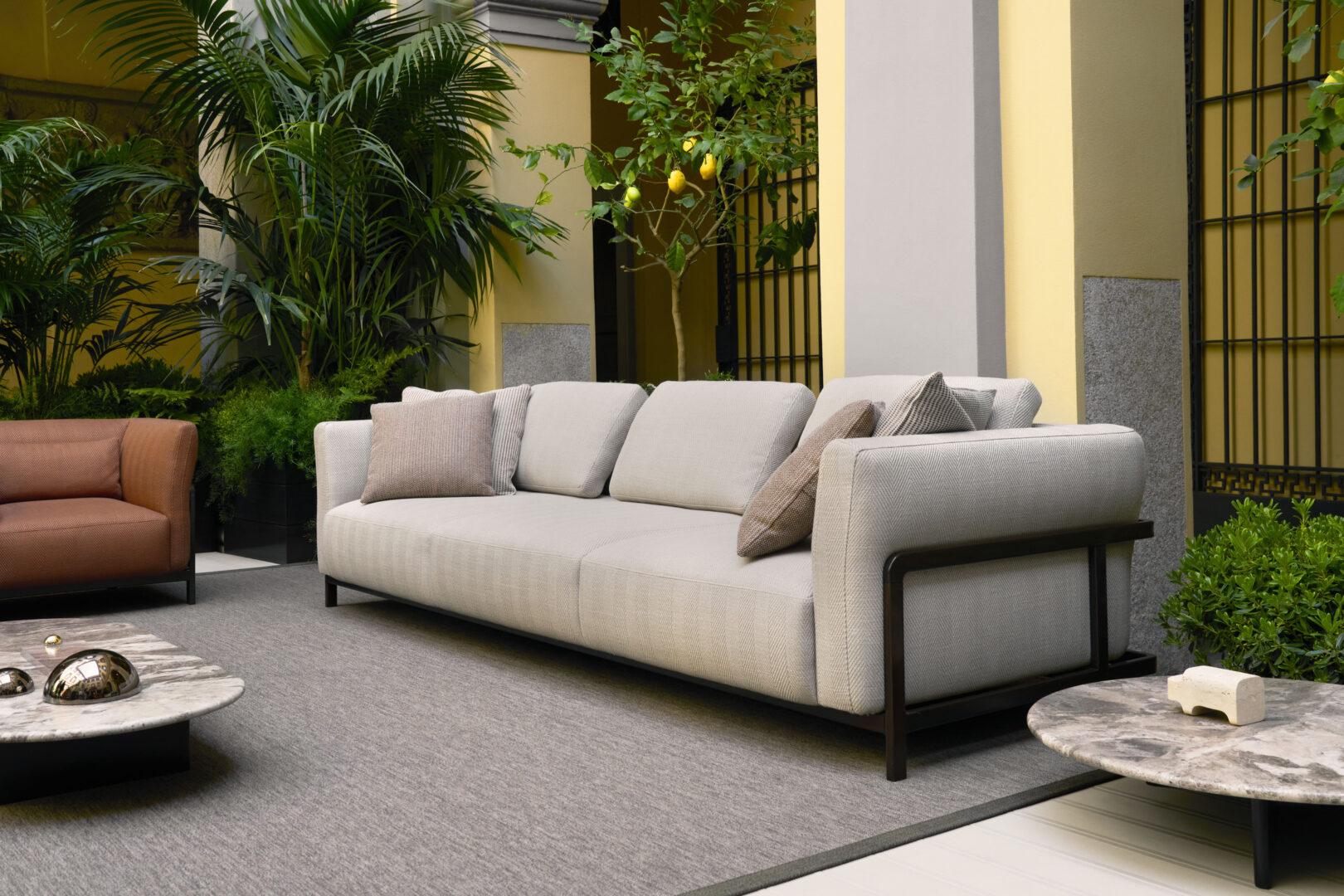 Диван DOMINICK, спроектированный архитектором Энрико Чезаной, обладает всем очарованием линейного дизайна с мягким и располагающим характером. Диван имеет изогнутую конструкцию из массива дерева, которая охватывает всю мягкую спинку и мягкое сиденье, что является примером мягких форм и легкости.