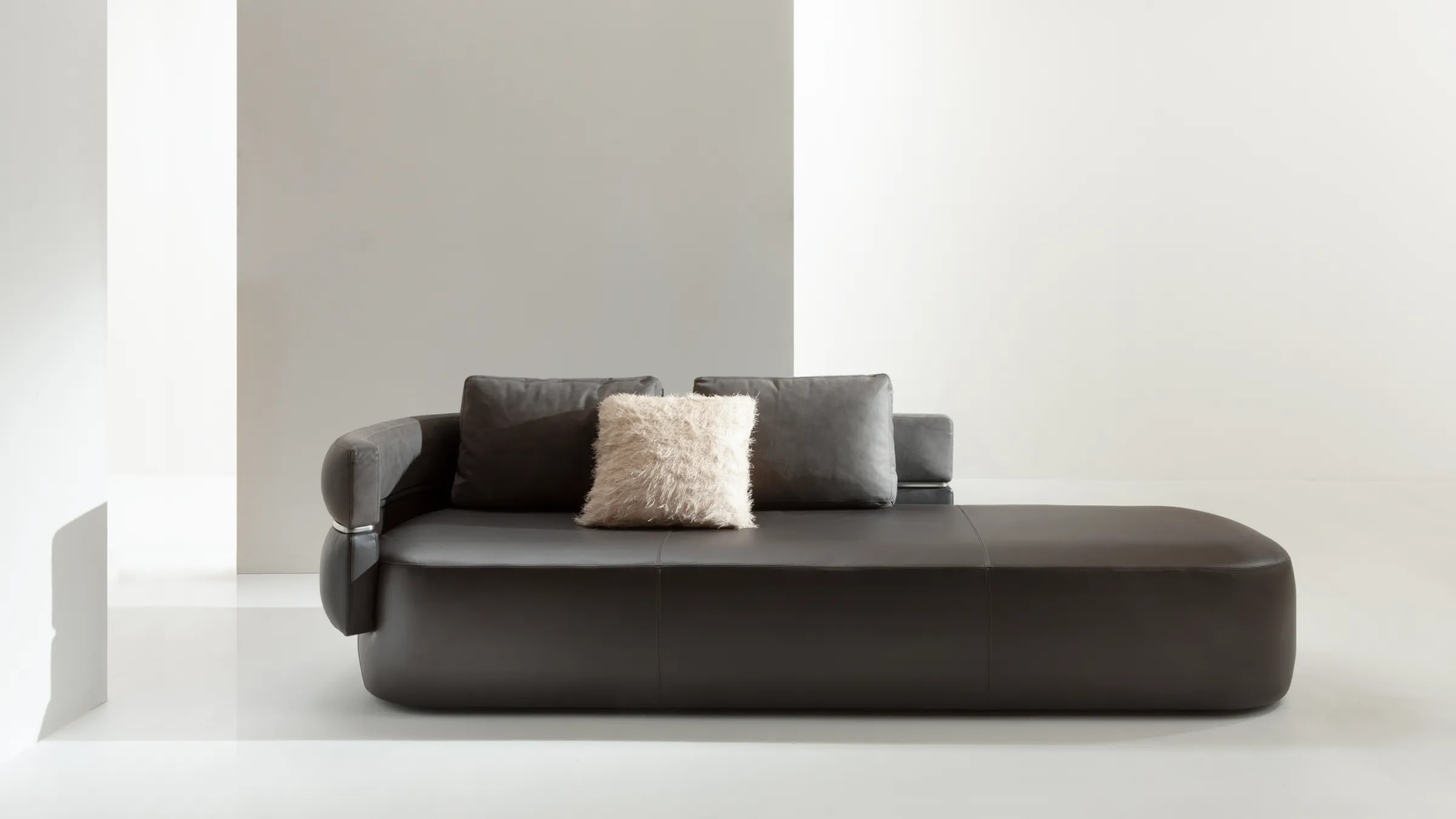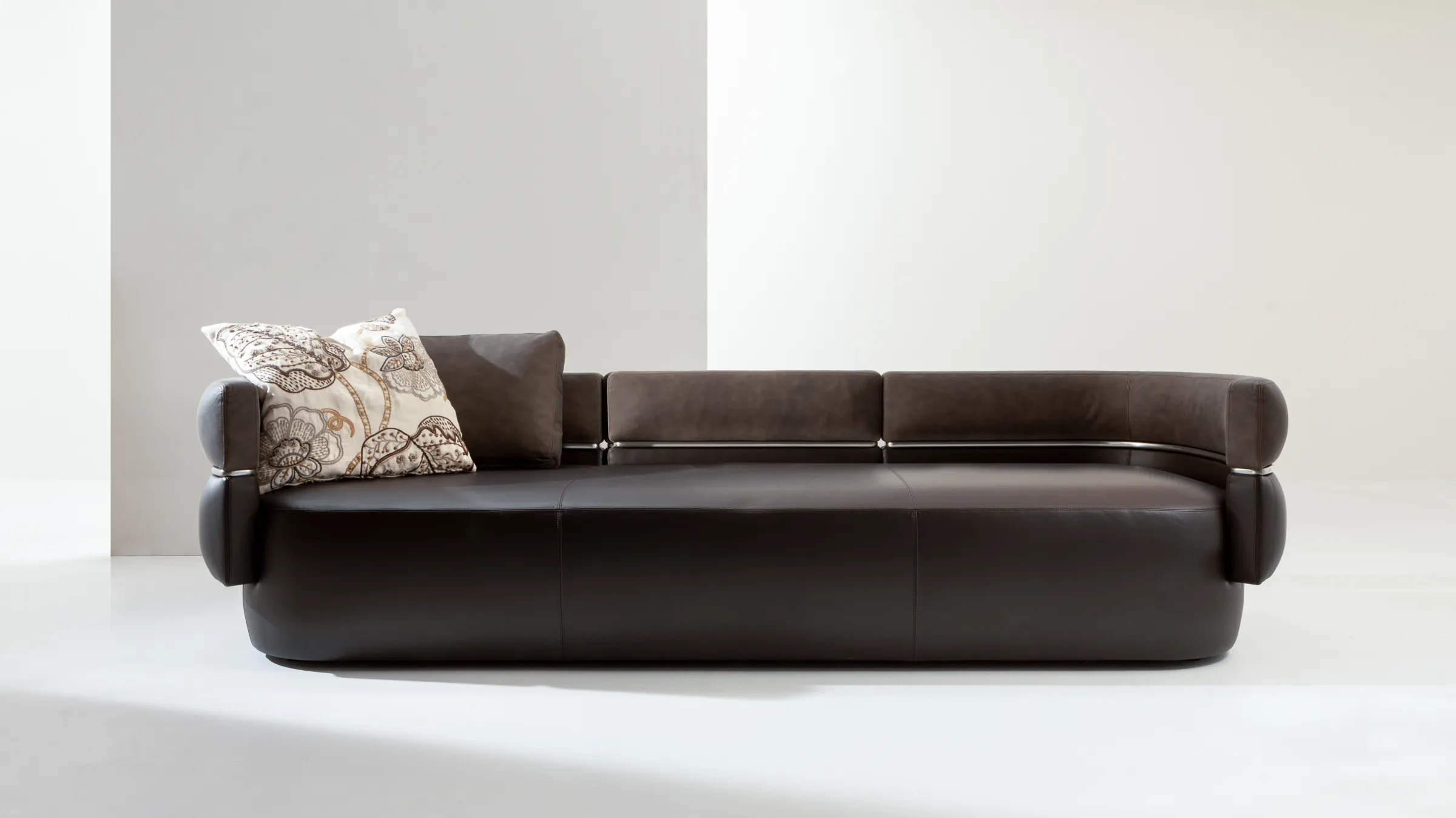 Диван с обивкой, доступный в двух- или трёхместной версии, как в формате оттоманки, так и в классическом варианте. Отличительной чертой является двойная спинка с мягкой обивкой, которую можно индивидуально оформить с отделкой в контрастном или тон-в-тон исполнении. Металлический профиль между спинками в отделке Liquid Metal цвета олова придаёт изделию выразительный архитектурный характер. Duetto выделяется своей скульптурной и в то же время утончённой эстетикой.
