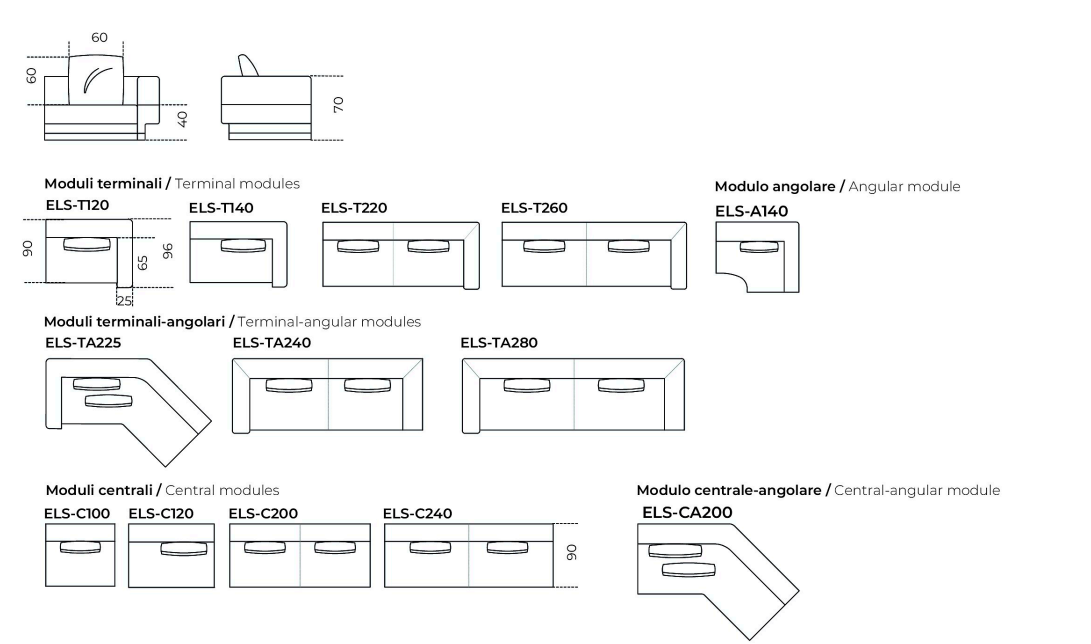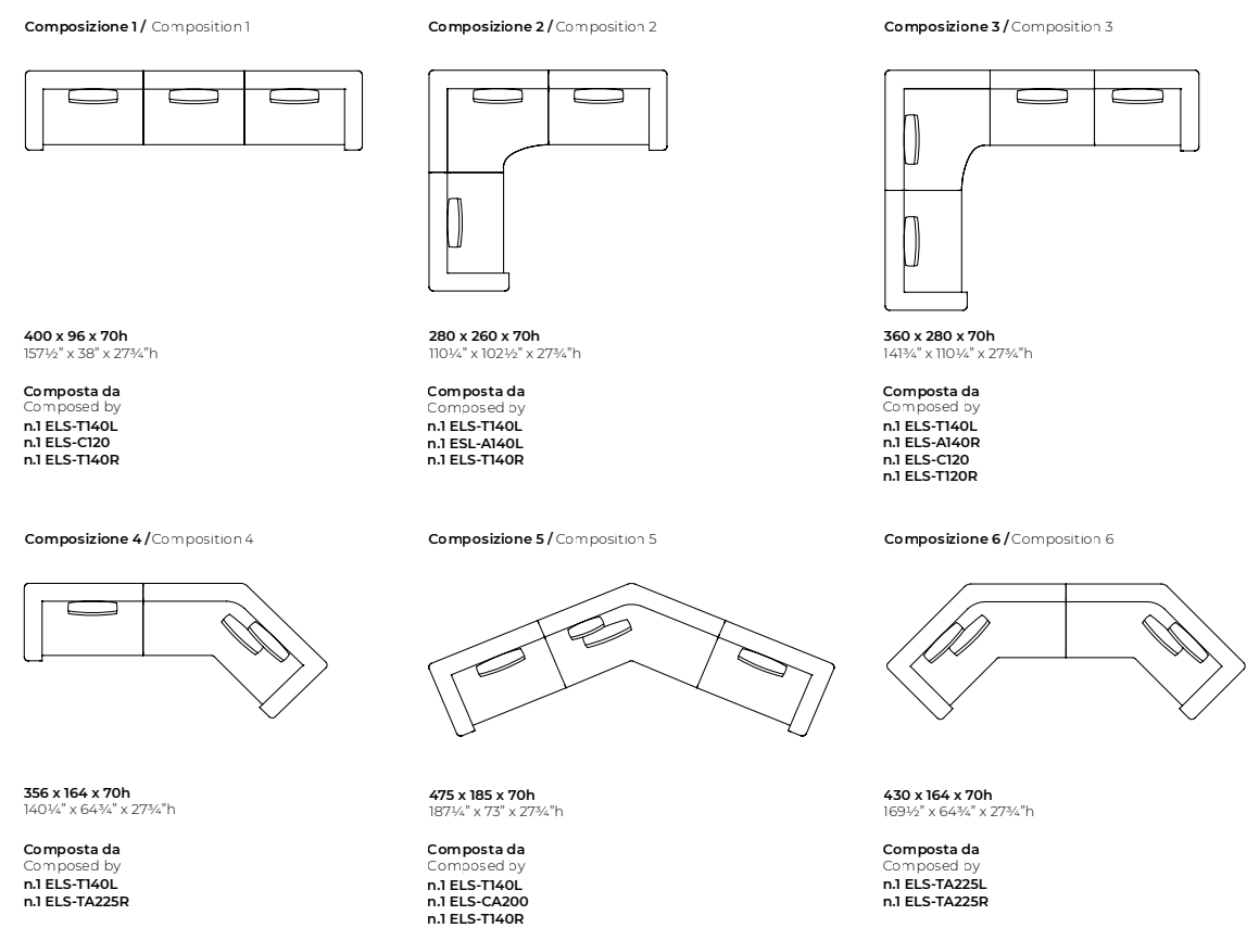 Модульный диван с внутренней структурой из дерева и производных. Наполненный непреобразуемым пенополиуретаном различной плотности и полиэфирным волокном. Горизонтальный шов по внешнему периметру. Пуховые подушки спинки включены. Подставка из лакированного дерева. Доступен с тканевой или кожаной обивкой в цветах образца. Съемное покрытие.