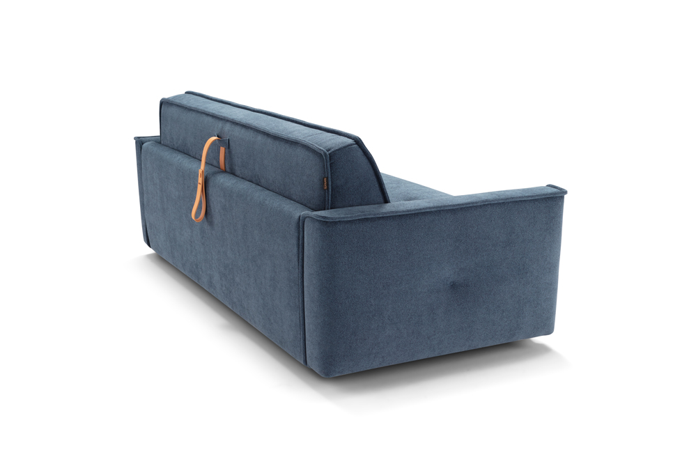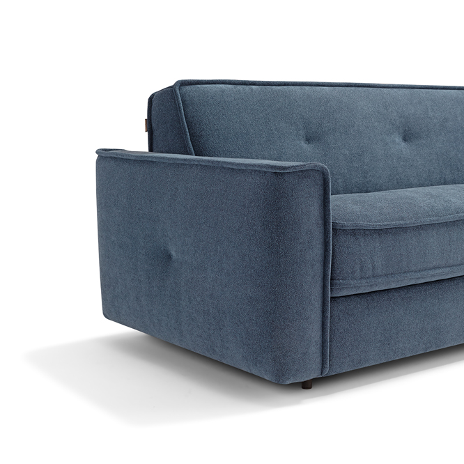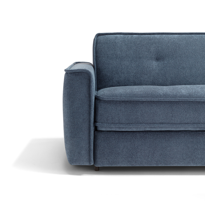 Elodie — это трехместный диван с лаконичными линиями и сбалансированными пропорциями, который легко впишется как в современные, так и в классические интерьеры. Его универсальность подчеркивается возможностью трансформации в двуспальную кровать — достаточно потянуть за встроенный кожаный ремень, чтобы раскрыть скрытый механизм. Модель создана для тех, кто ценит не только эстетику, но и практичность: будь то послеобеденный отдых или полноценный ночной сон.