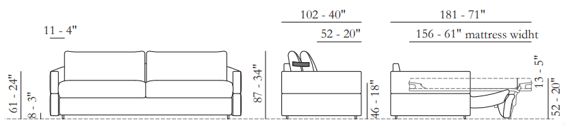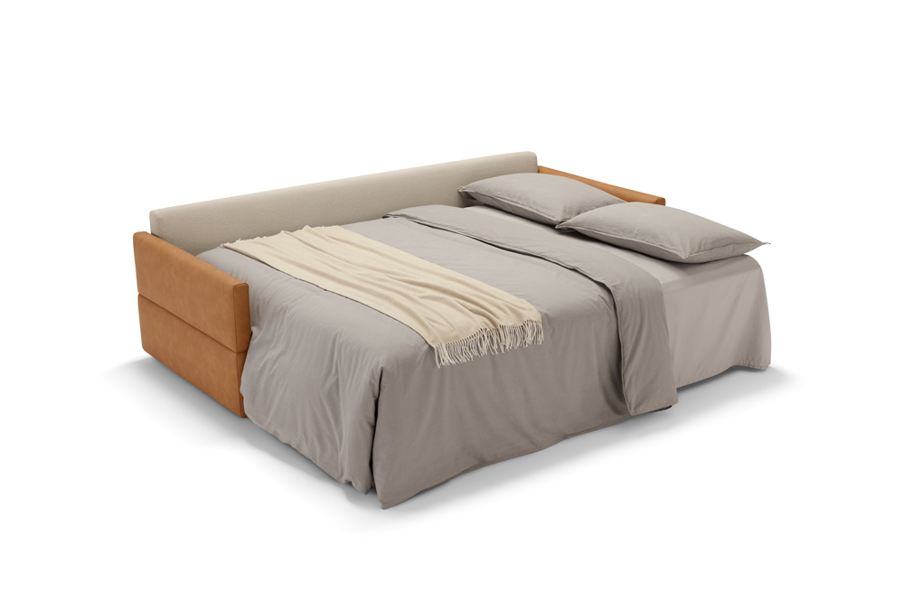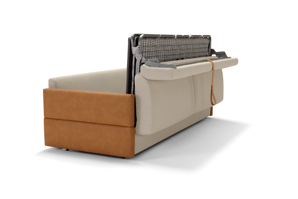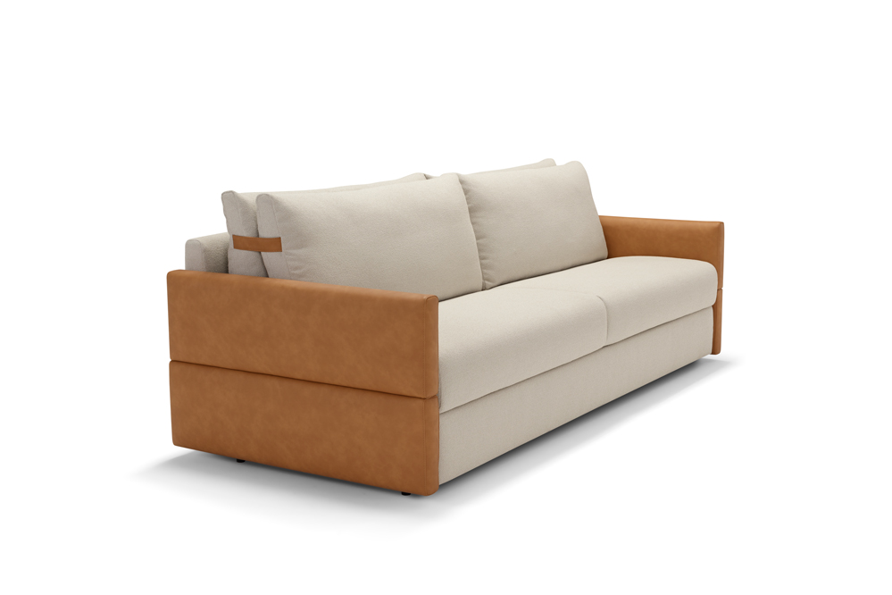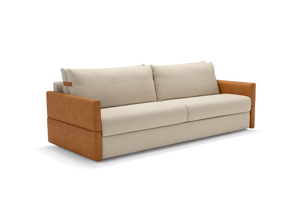 Диван-кровать оснащен удобным механизмом трансформации: достаточно снять плечевые подушки и активировать встроенный ремень, чтобы раскрыть комфортный матрас. Итальянское качество исполнения гарантирует долговечность и безупречный внешний вид.