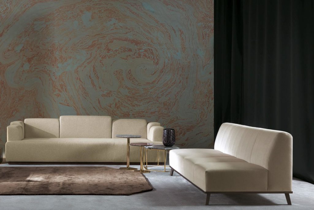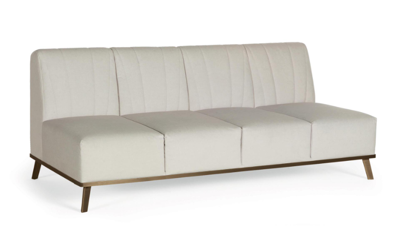 Двухместный диван без подлокотников с бронзовой металлической подставкой. FEELING можно использовать в сочетании с другими элементами Moderna Collection ZANABONI Editions для создания модульного дивана с большим эффектом.