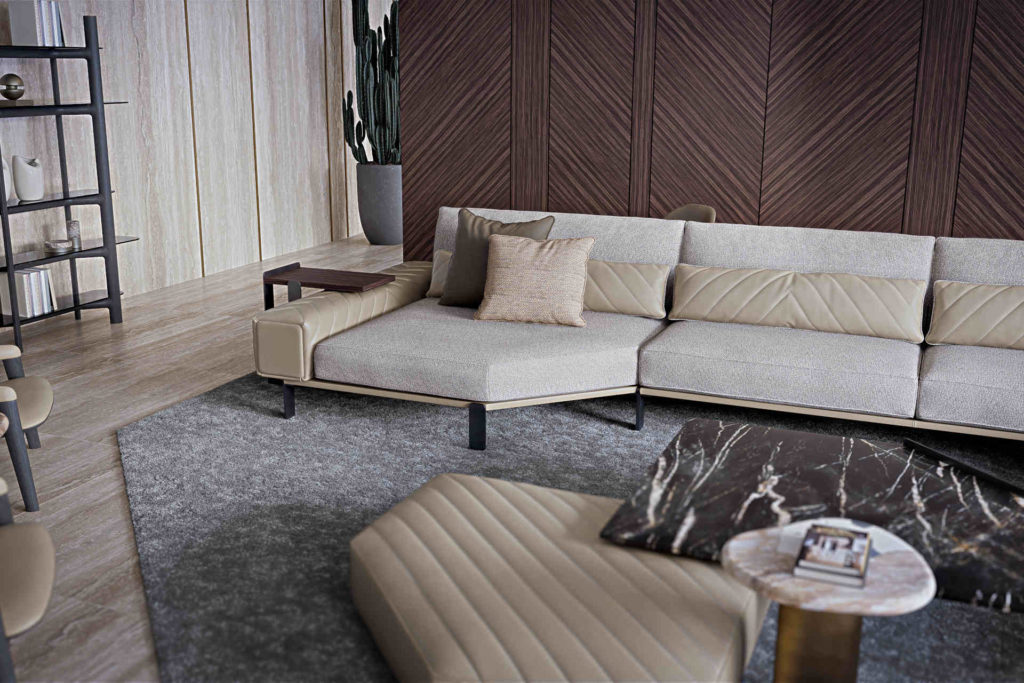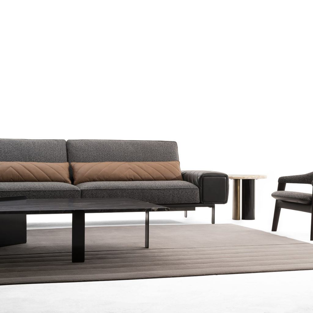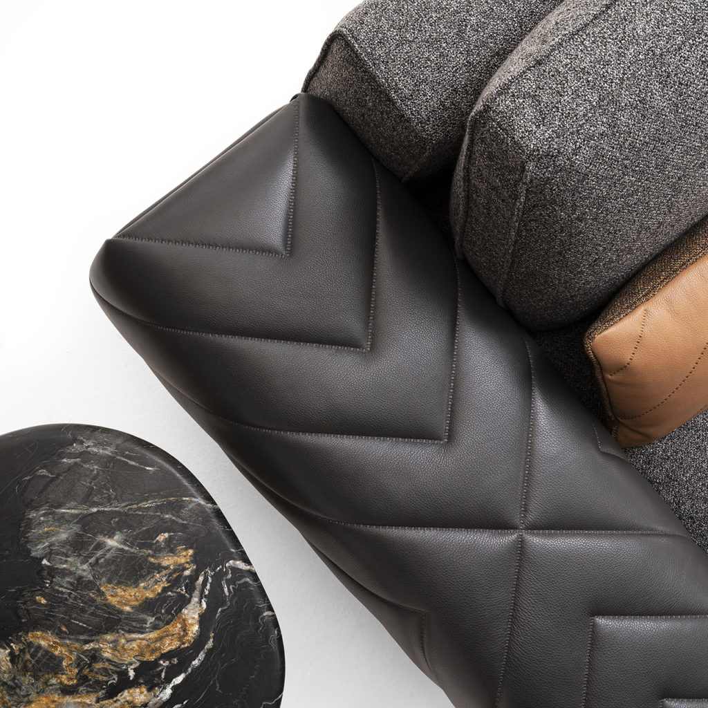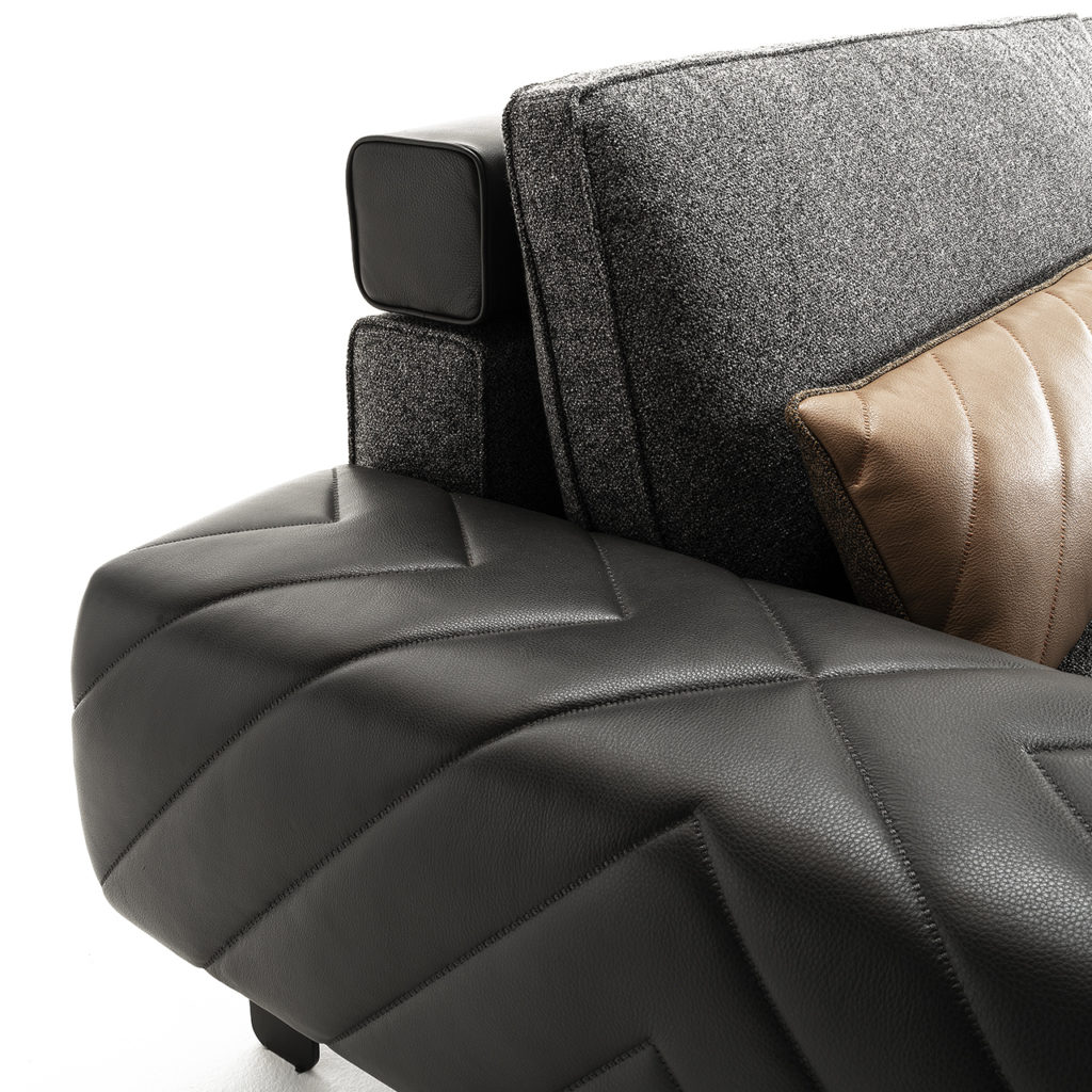 FREDDY-это диван в современном стиле, который отличается элегантным сочетанием кожаных и тканевых элементов Moderna. Доступный в фиксированной или модульной версии FREDDY-это культовый диван, наполненный такими деталями, как стеганое одеяло в подлокотнике и подлокотниках.