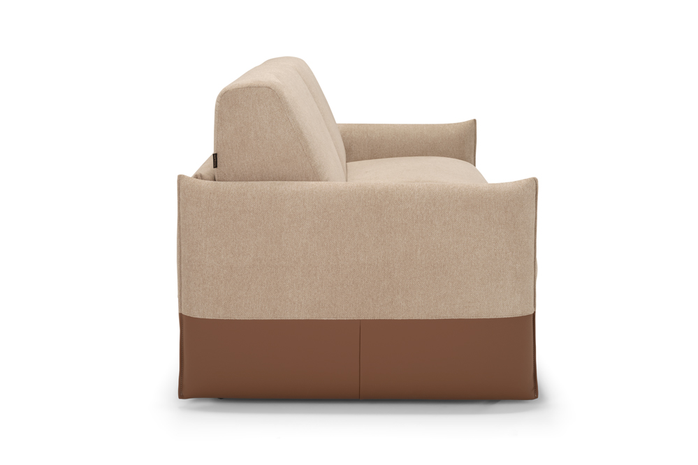 Диван Freddy привлекает внимание контрастным сочетанием материалов — благородной терракотовой кожи для основы и мягкой кремовой ткани для обивки. Такая комбинация создает эффект глубины и тепла, делая модель центром интерьера. Округлое бесшовное сиденье и высокая спинка обеспечивают комфорт, а изящные подлокотники, напоминающие отполированное мыло, добавляют скульптурности. Защемленные швы, фирменный знак Sartoris italia, подчеркивают внимание к деталям и мастерство исполнения.