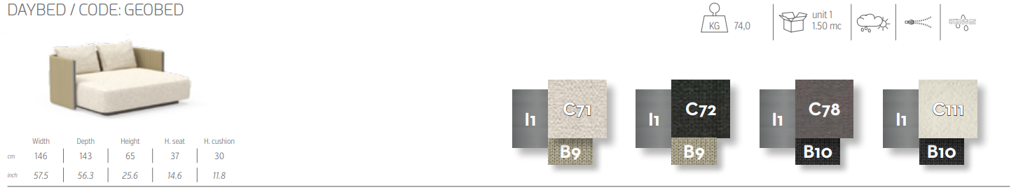 Кушетка George сочетает в себе все ключевые элементы, характерные для коллекции: стойки из нержавеющей стали, мягкие ремни, покрывающие каркас, мягкое сиденье с обивкой, идеально подходящее для наслаждения моментами отдыха на свежем воздухе.