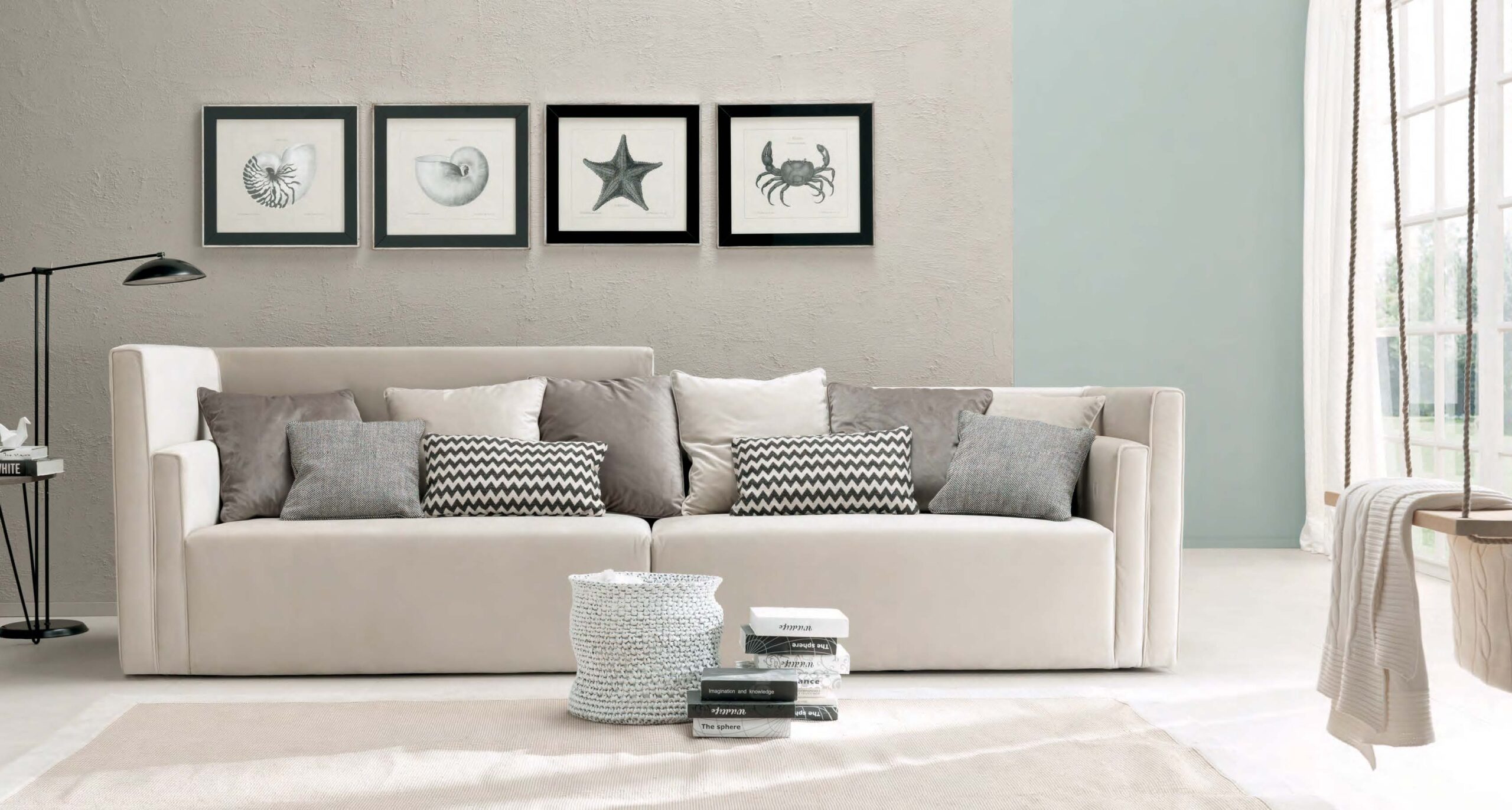 Версии: 2 места, 2 с половиной места, 3 сиденья и модульные версии. Структура: дерево и его производные, эластичные ремни скрещенные с высокой прочностью. Обивка: пенополиуретан на высоте и дифференцированные качества, полиэфирные волокна. Особенности: съемный; подшипники
