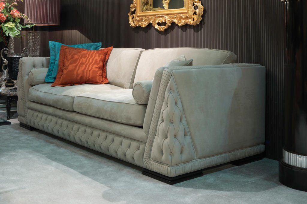 Нефритовый диван-это элегантный элемент дизайна, доступный во всех тканях и шкурах образца. GIADA характеризуется стволом из массива дерева, традиционной гипоаллергенной обивкой и подушками из гусиного пуха с полиуретановой вставкой.